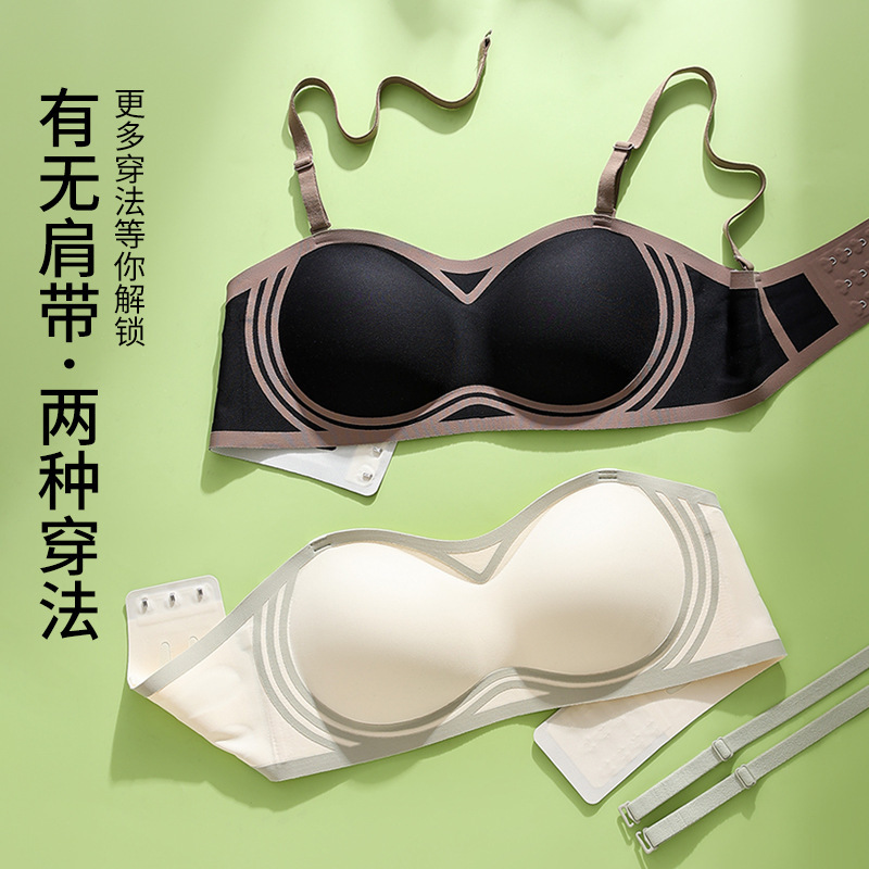 无肩带防滑不掉抹胸内衣夏季薄款小胸聚拢无痕隐形美背裹胸文胸罩