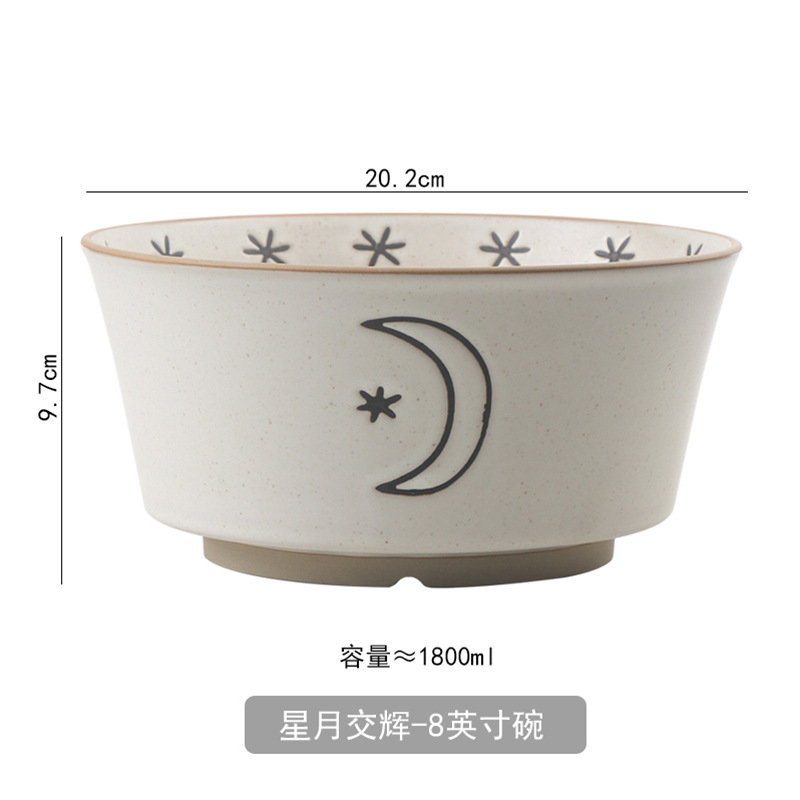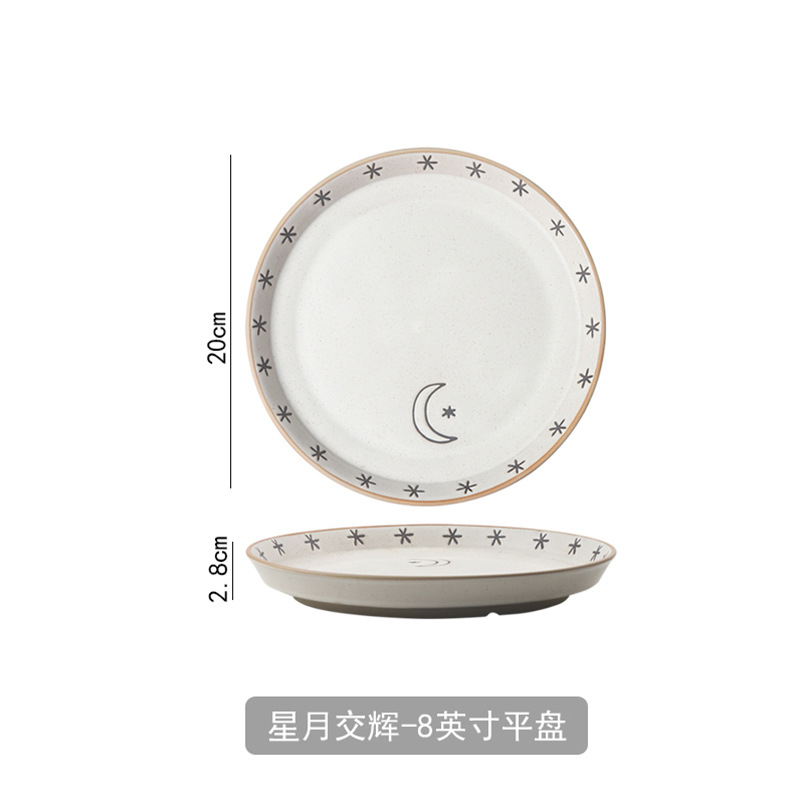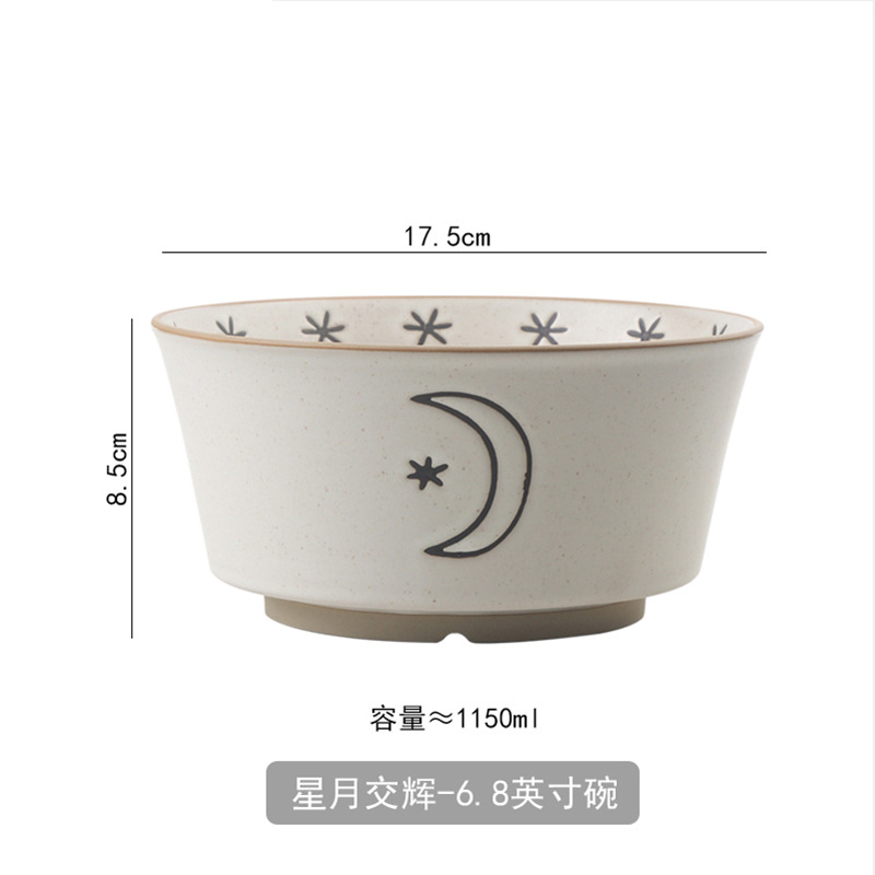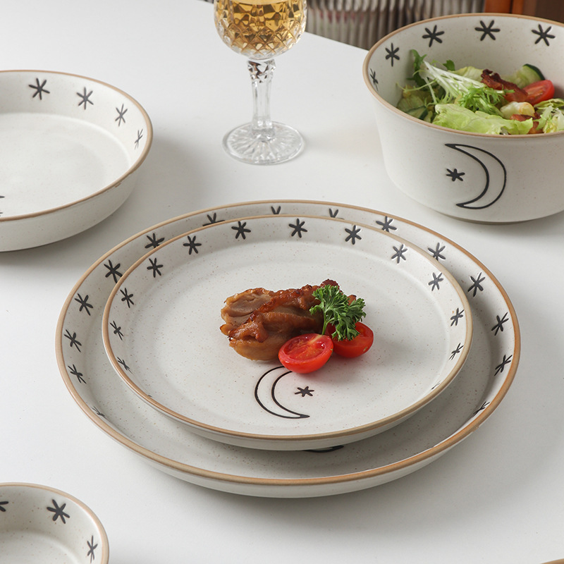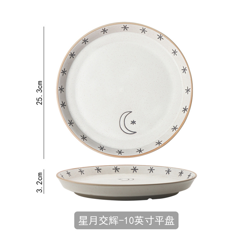 日月星辰餐具碗盘家用组合日式粗陶碗碟套装高颜值饭碗菜盘大汤碗