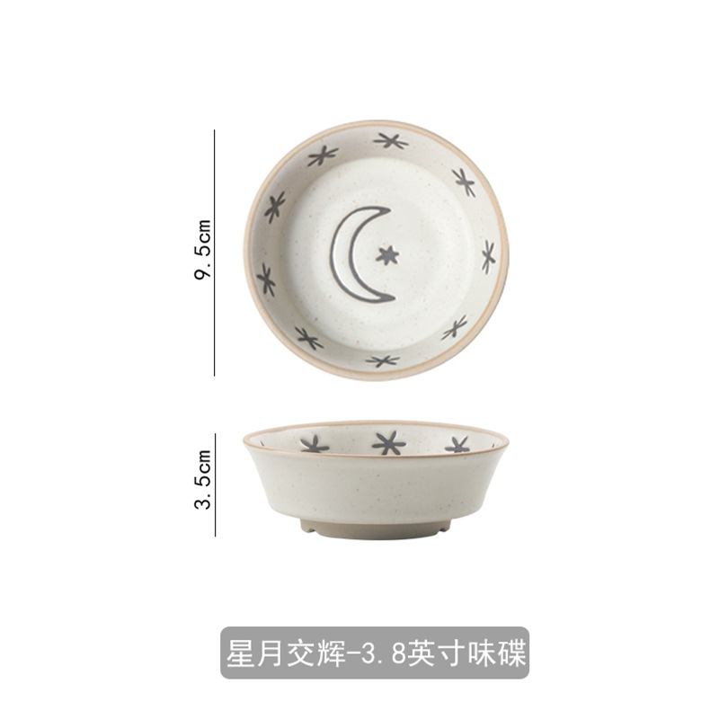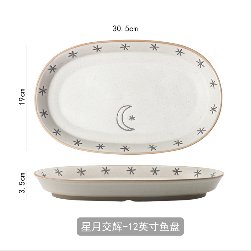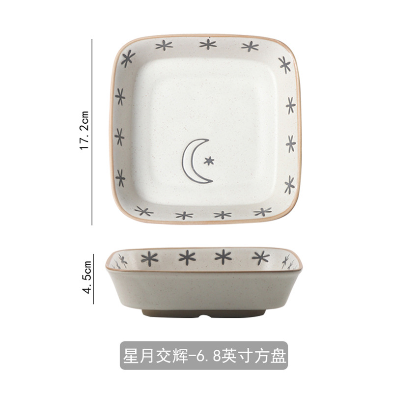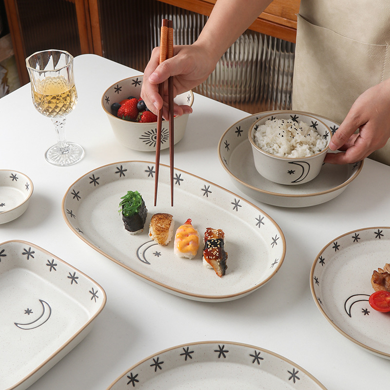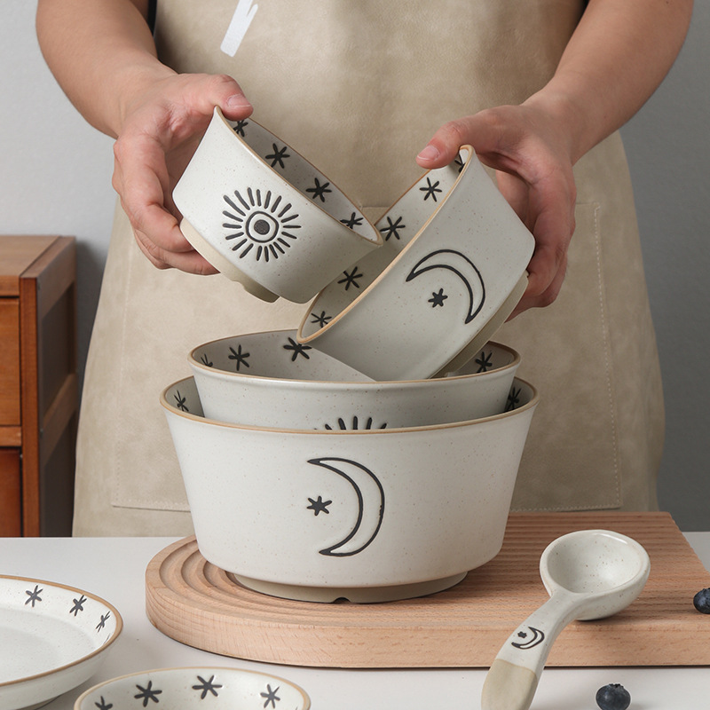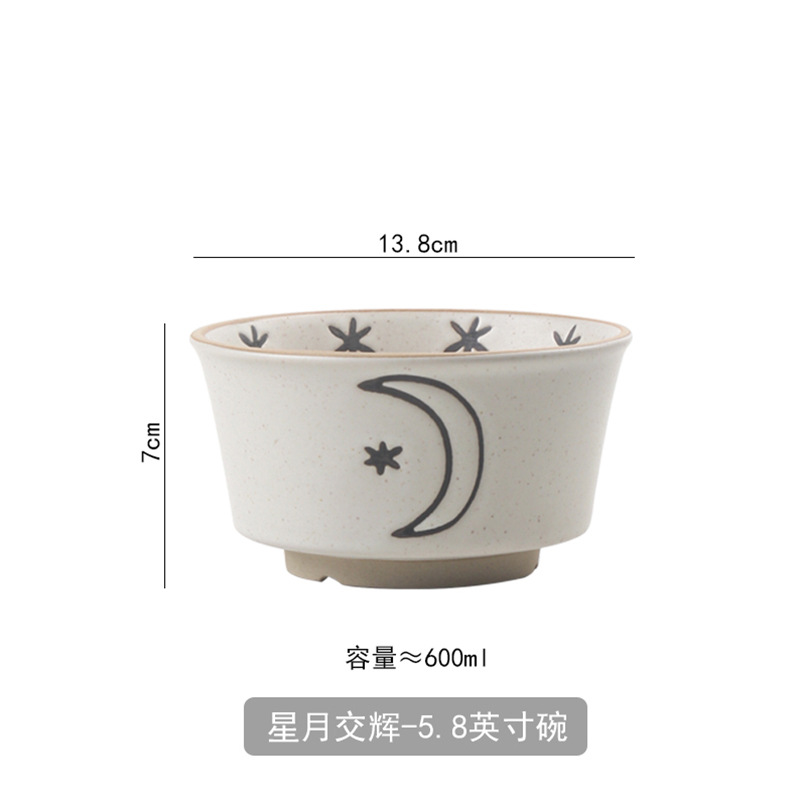日月星辰餐具碗盘家用组合日式粗陶碗碟套装高颜值饭碗菜盘大汤碗