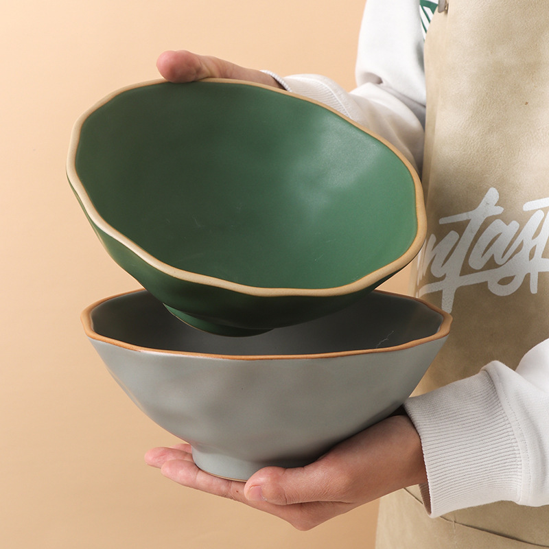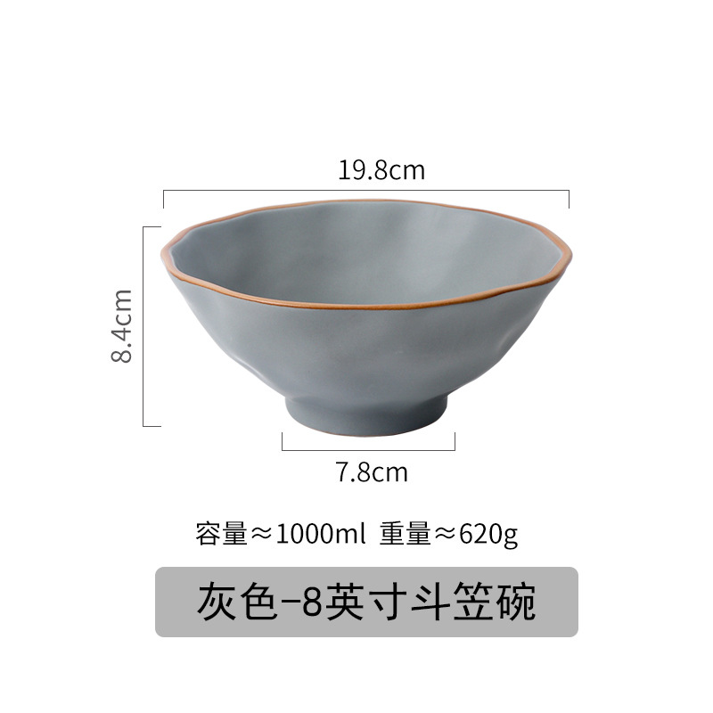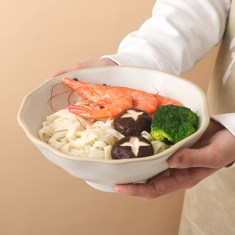 日式粗陶拉面碗原创设计手工花边斗笠碗大号家用汤碗复古陶瓷餐具