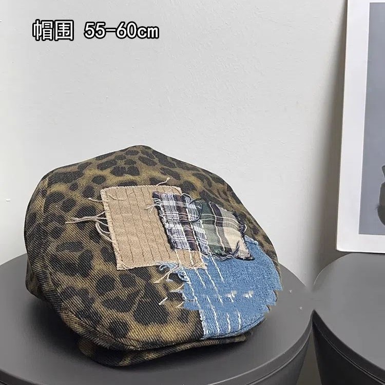 美式复古豹纹鸭舌前进帽女千禧辣妹补丁画家报童帽子显脸小贝雷帽