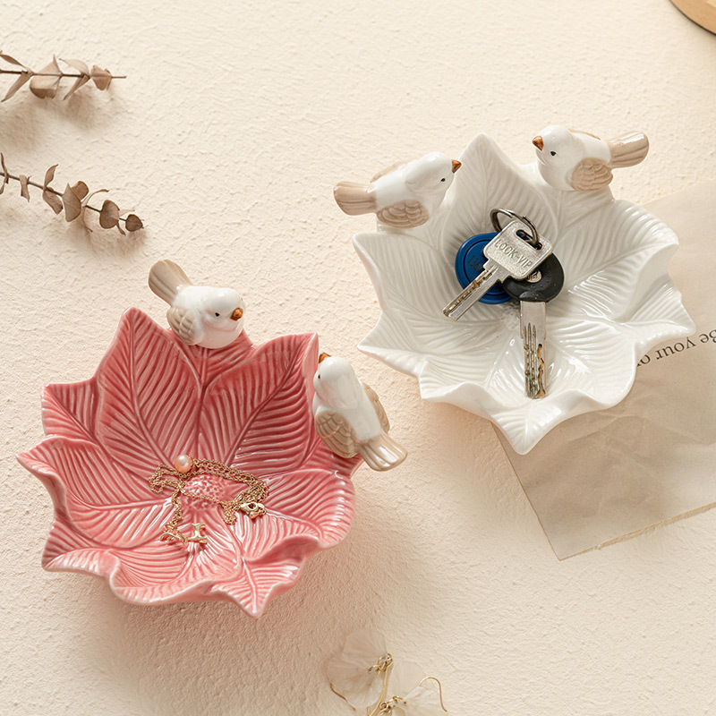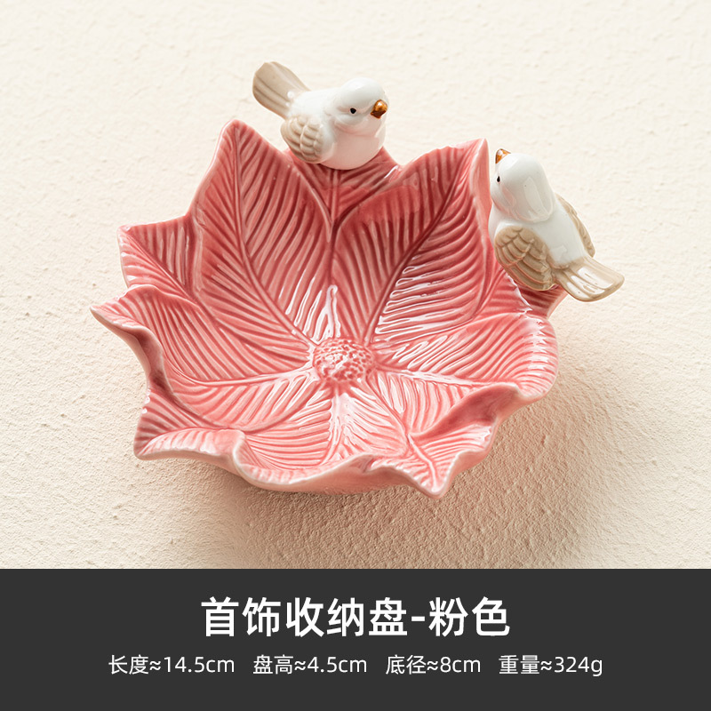 首饰钥匙收纳盘家用客厅桌面化妆品杂物置物盘陶瓷可爱小饰品摆件