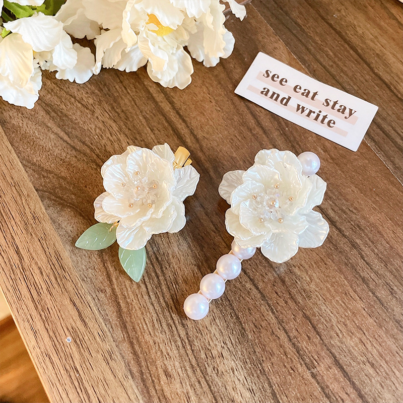 法式浪漫超仙山茶花发夹发卡少女感复古侧边刘海夹气质甜美头饰女