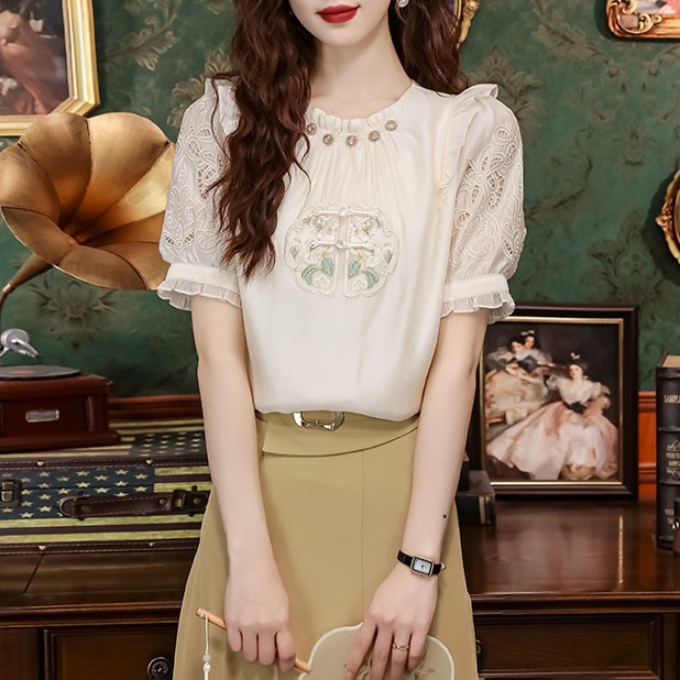 小众设计高级质感钉珠衬衫女夏国风国潮雪纺衫上衣洋气小衫