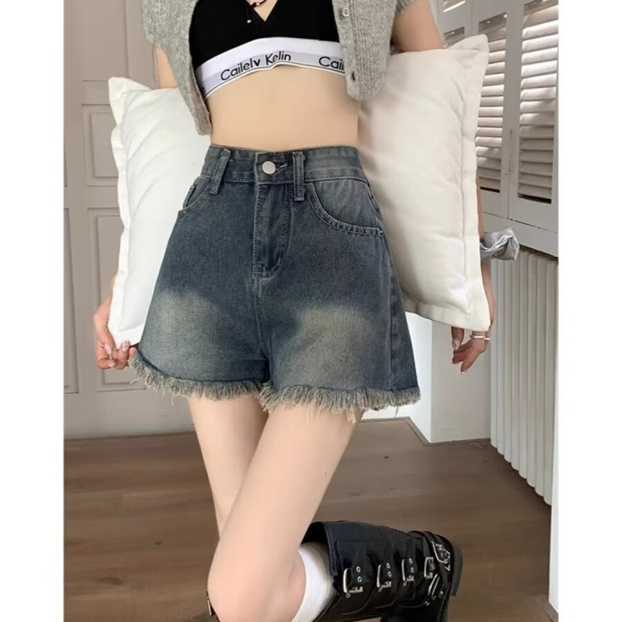 耐磨秋季长裤毛边牛仔短裤女夏季薄款渐变设计感五分裤子美式高街