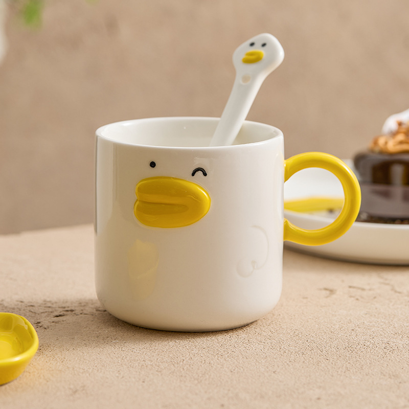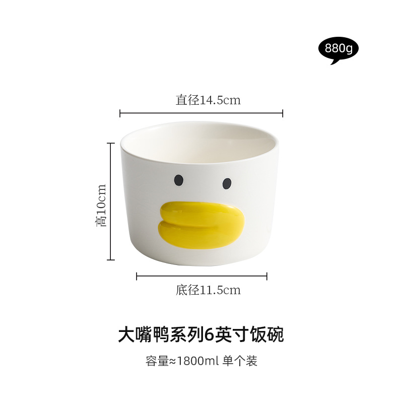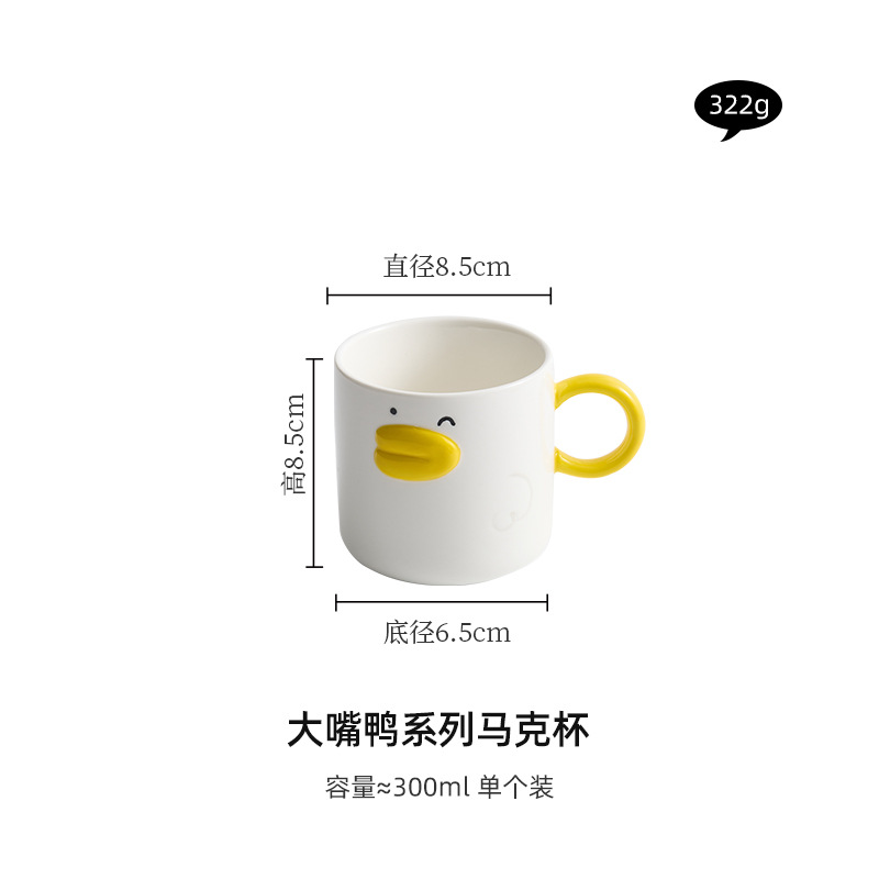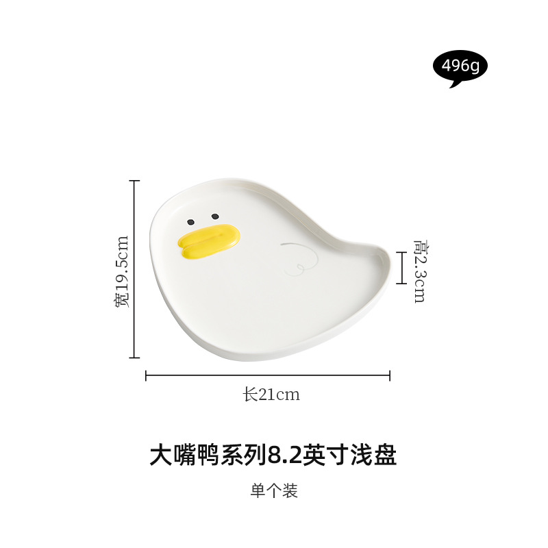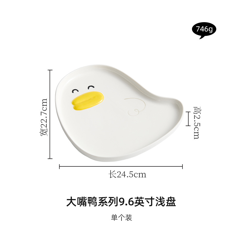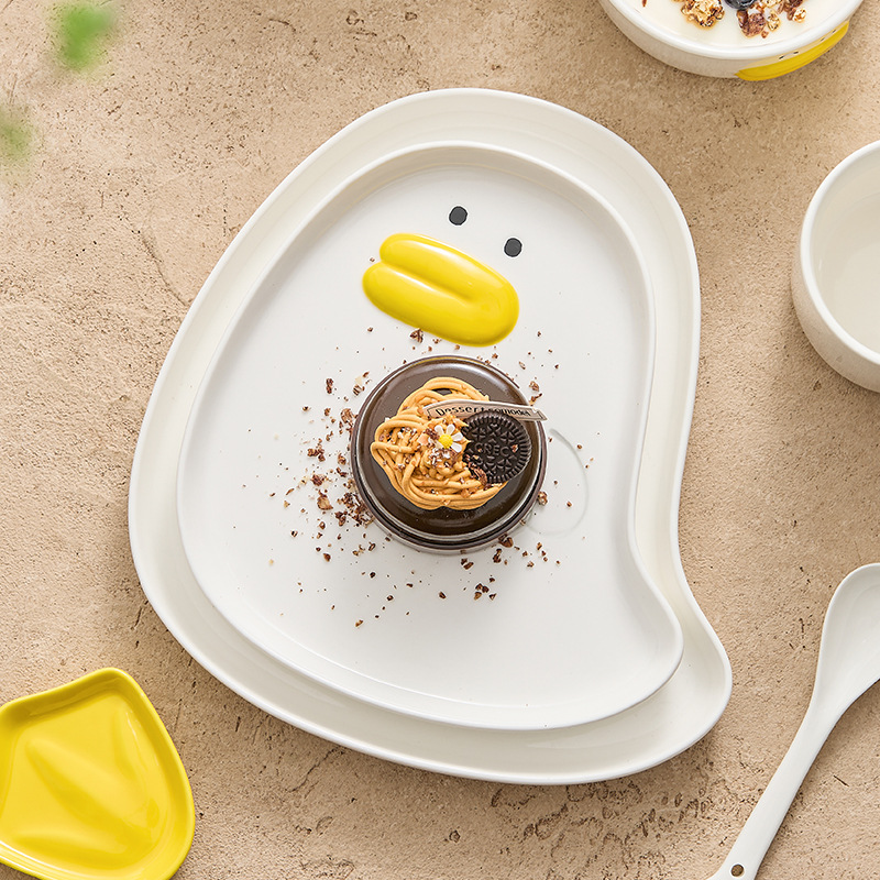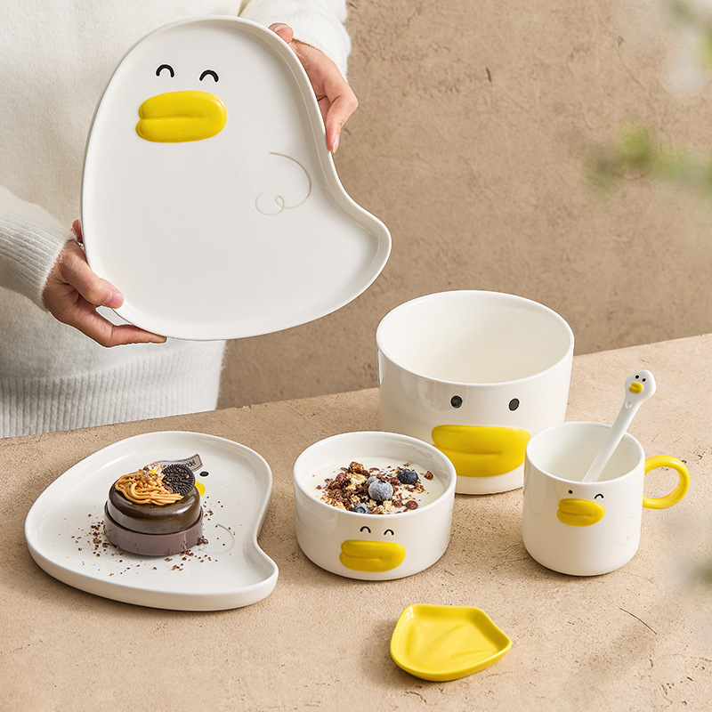 陶瓷大嘴鸭餐具套装轻奢高颜值卡通儿童杯带勺子早餐盘燕麦碗