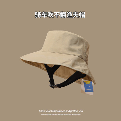 骑车吹不翻渔夫帽男夏防晒防紫外线电动车防风大檐遮阳帽女太阳帽