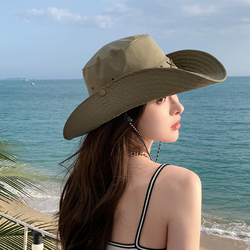 美式复古西部牛仔帽子女夏季户外百搭渔夫帽海边度假防晒遮阳帽男