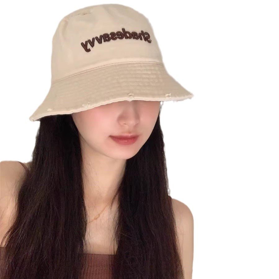 设计师破边大檐渔夫帽女韩版字母刺绣显脸小盆帽男夏季遮阳防晒帽