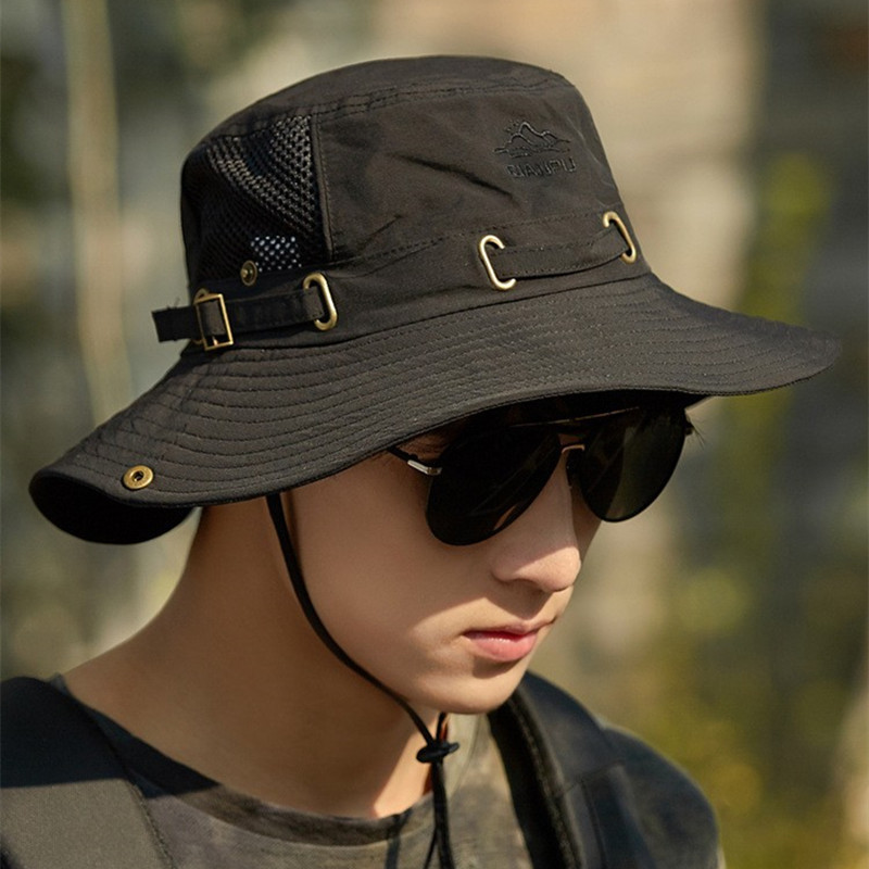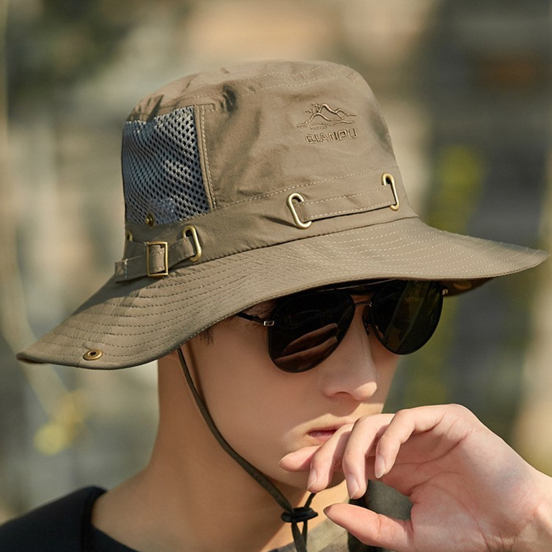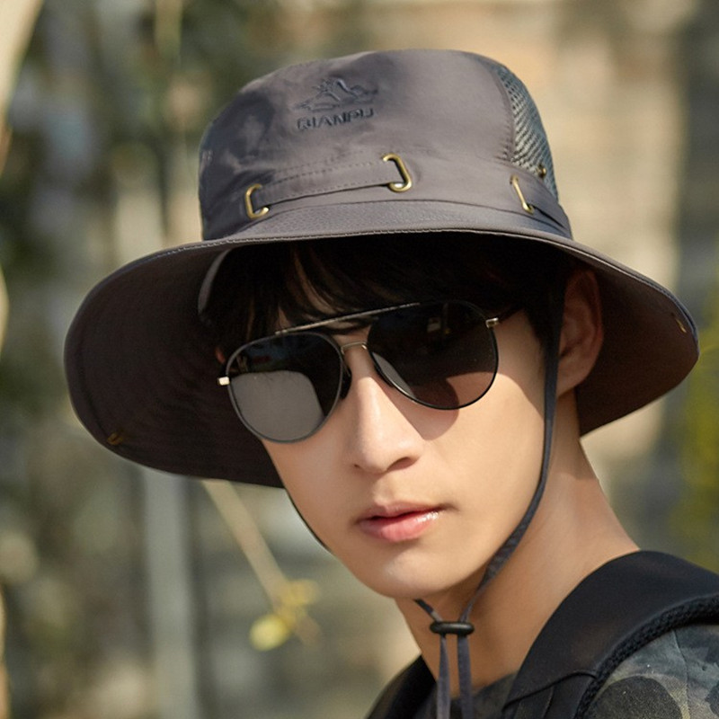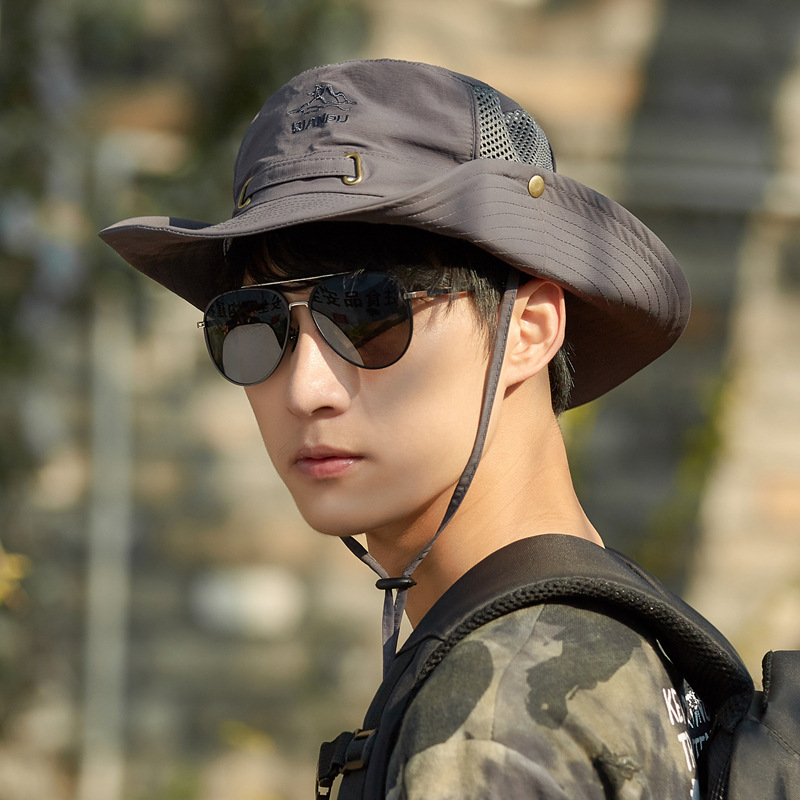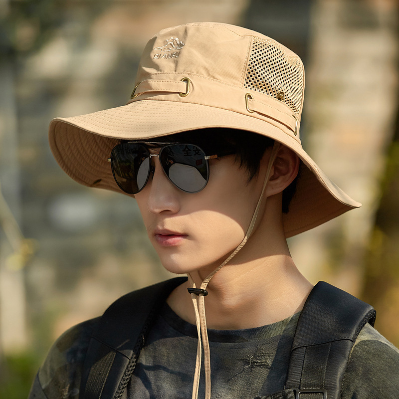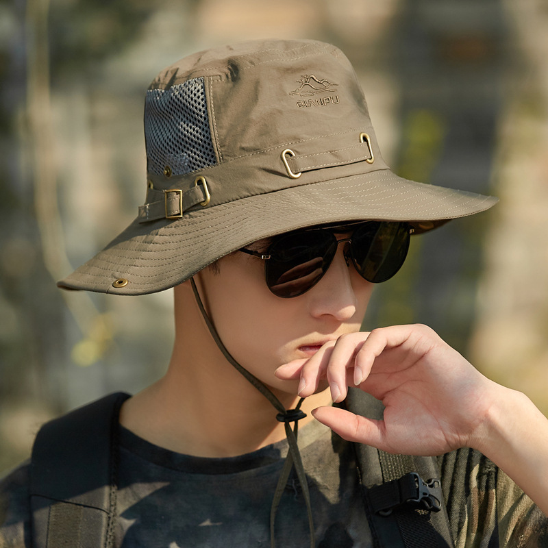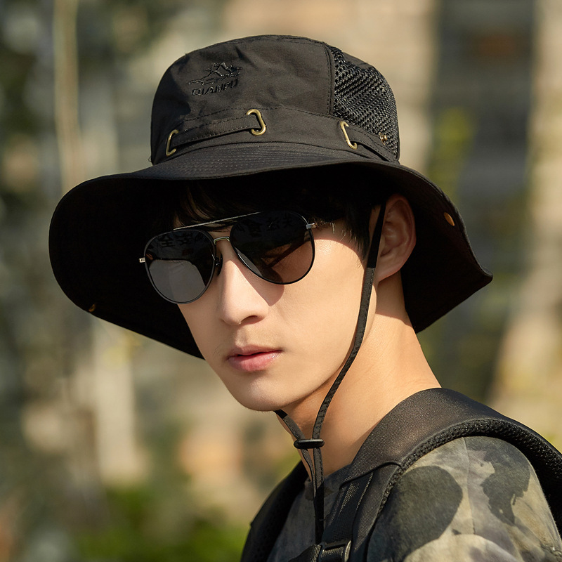 大檐帽子男士夏季户外出游防晒太阳帽透气大边钓鱼网帽渔夫帽凉帽
