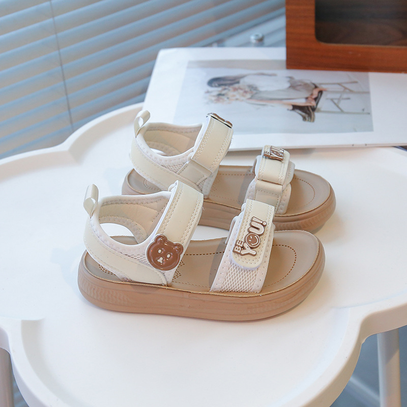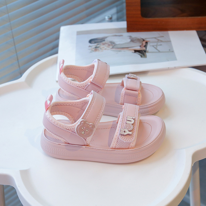 女童清新旋转纽扣凉鞋2025年春夏季新款儿童镂空沙滩鞋时尚露趾鞋