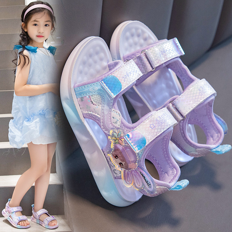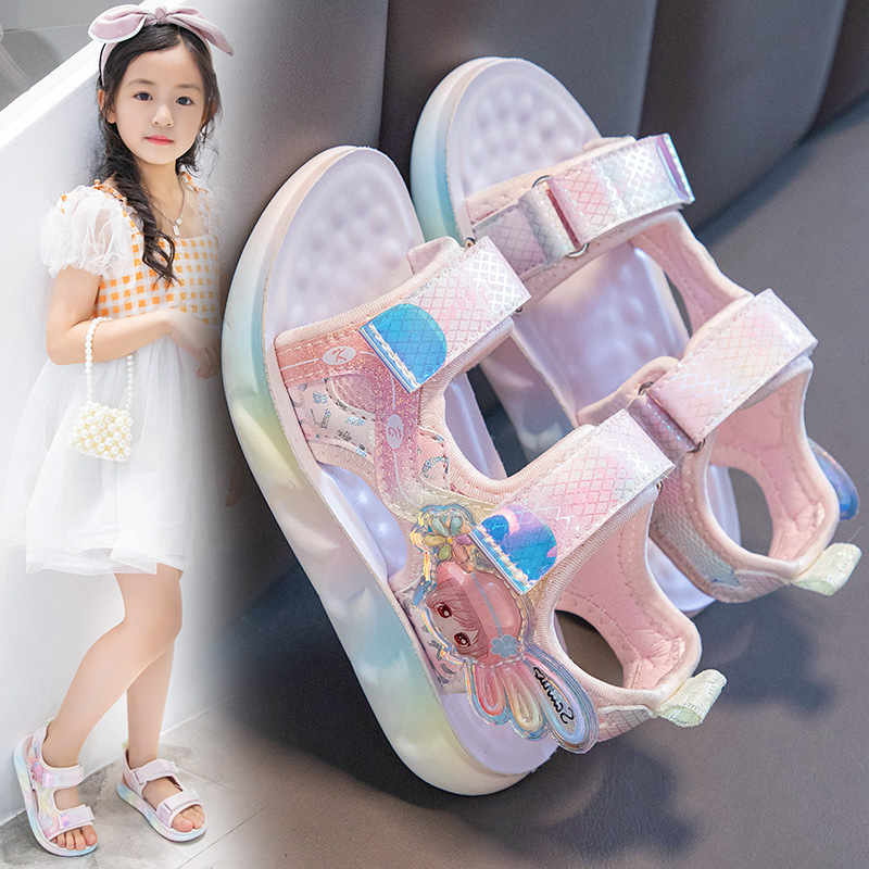 女童彩虹软底运动凉鞋2025夏季公主宝宝沙滩鞋儿童休闲时尚宝宝鞋