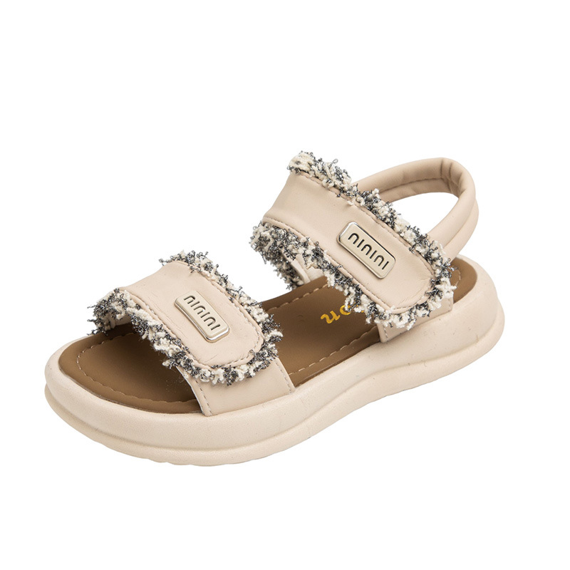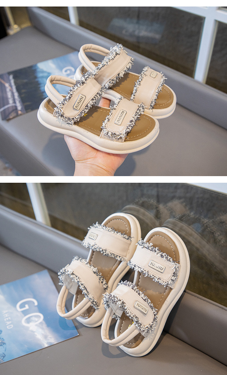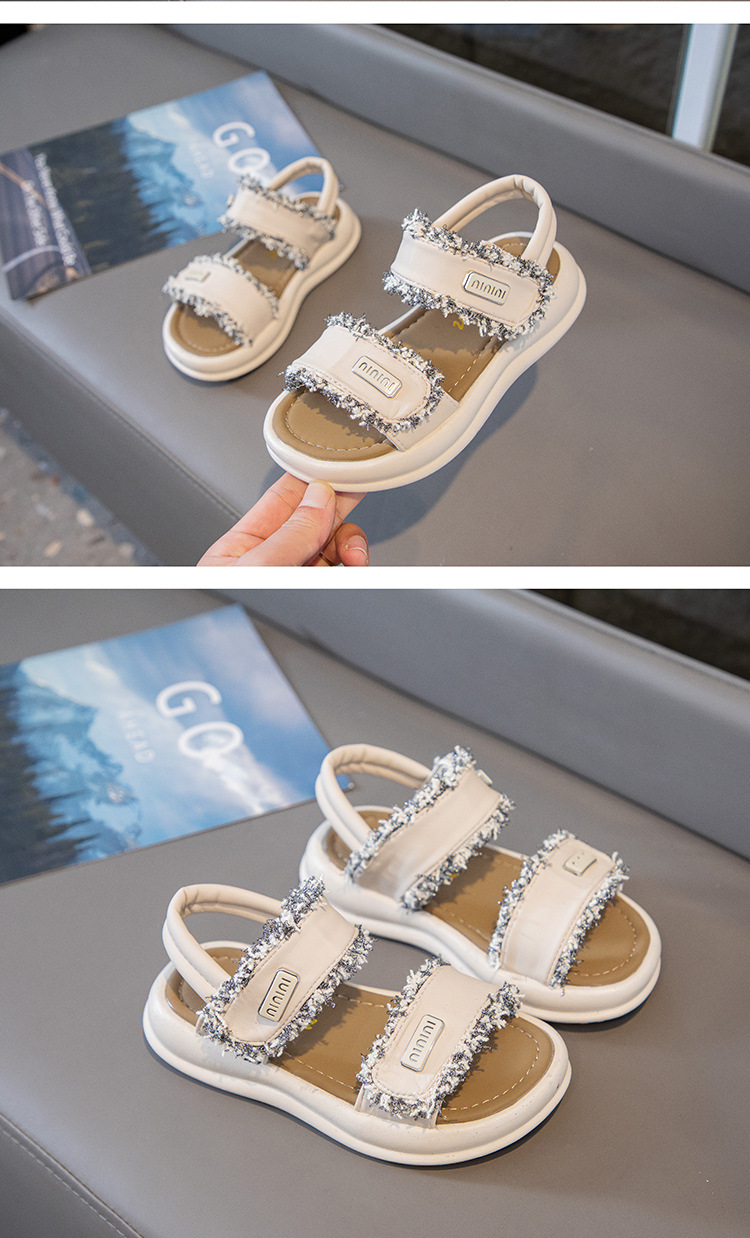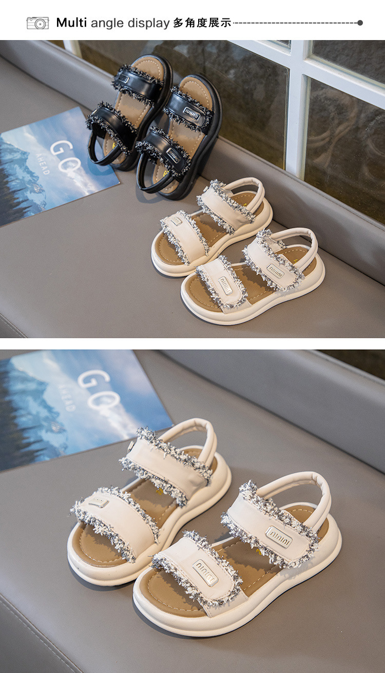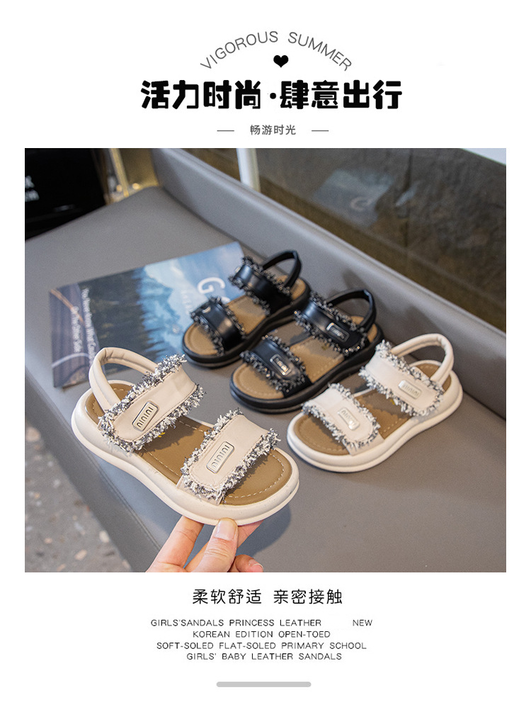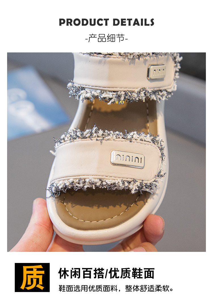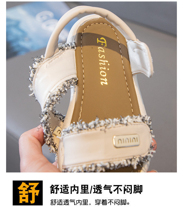 法式小香风拖鞋女童2025春夏季新款网红时尚水钻一字平底沙滩凉拖