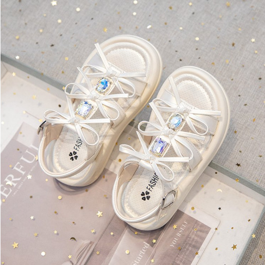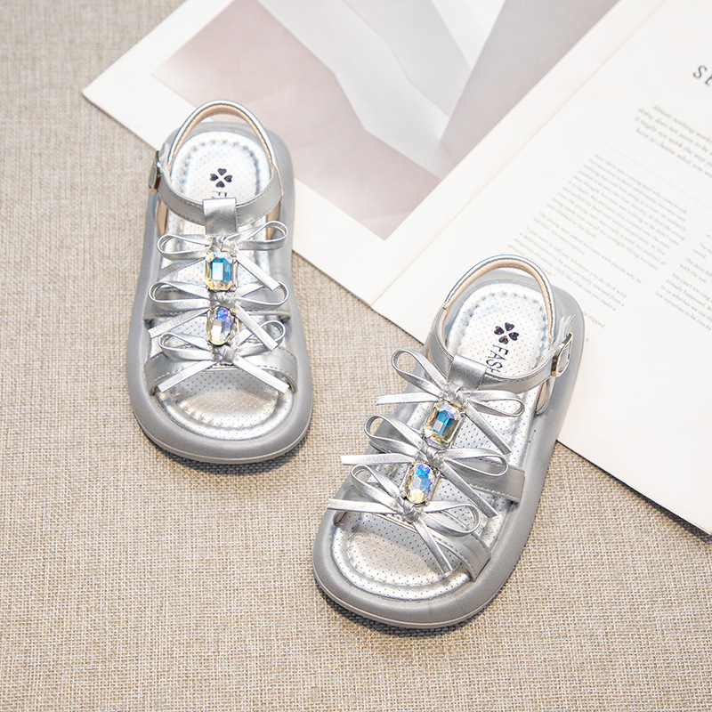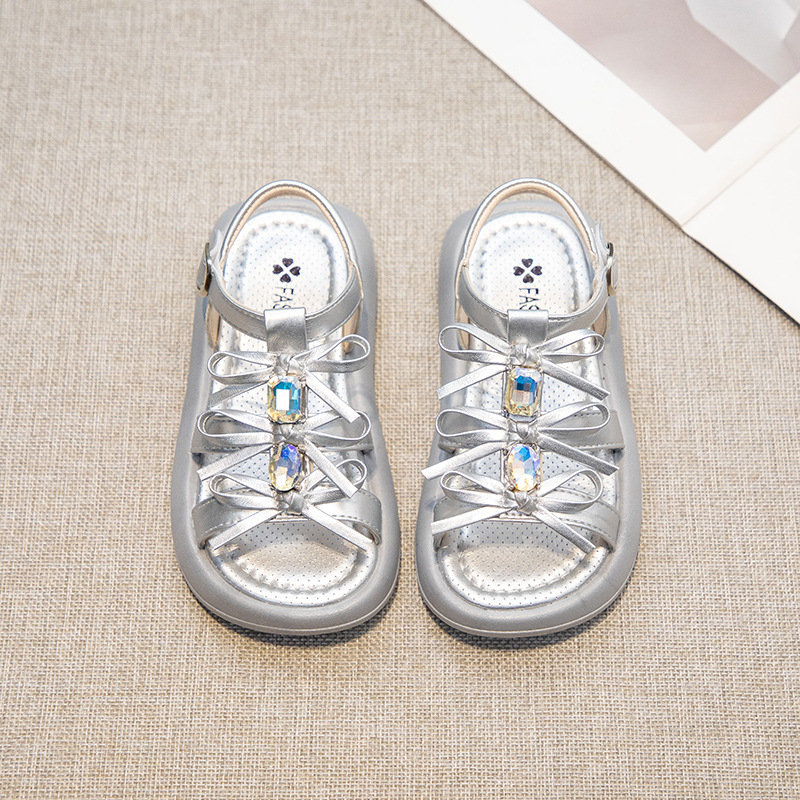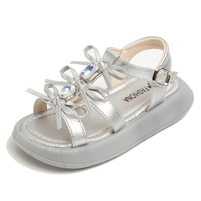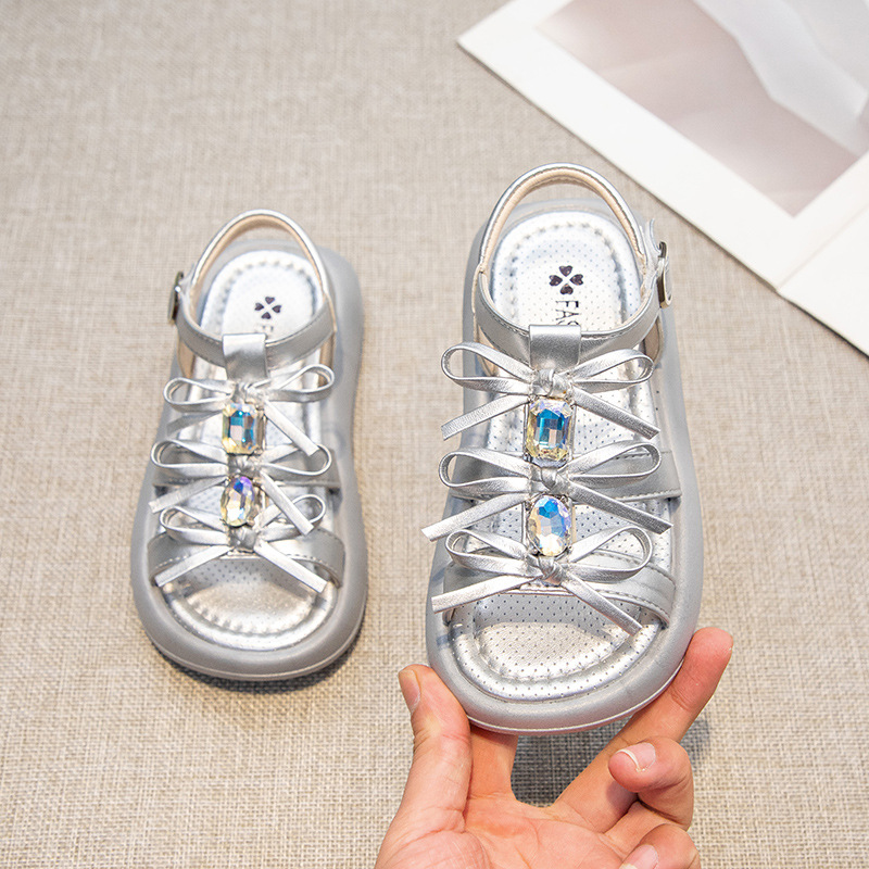 女童凉鞋夏季蝴蝶结水钻可爱公主风中小童厚底露趾罗马鞋女孩凉鞋