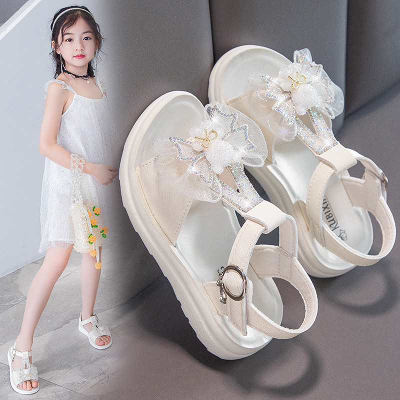 2025年夏季新款女童凉鞋小女孩蝴蝶结透气休闲鞋学生露趾潮沙滩鞋