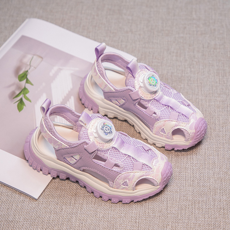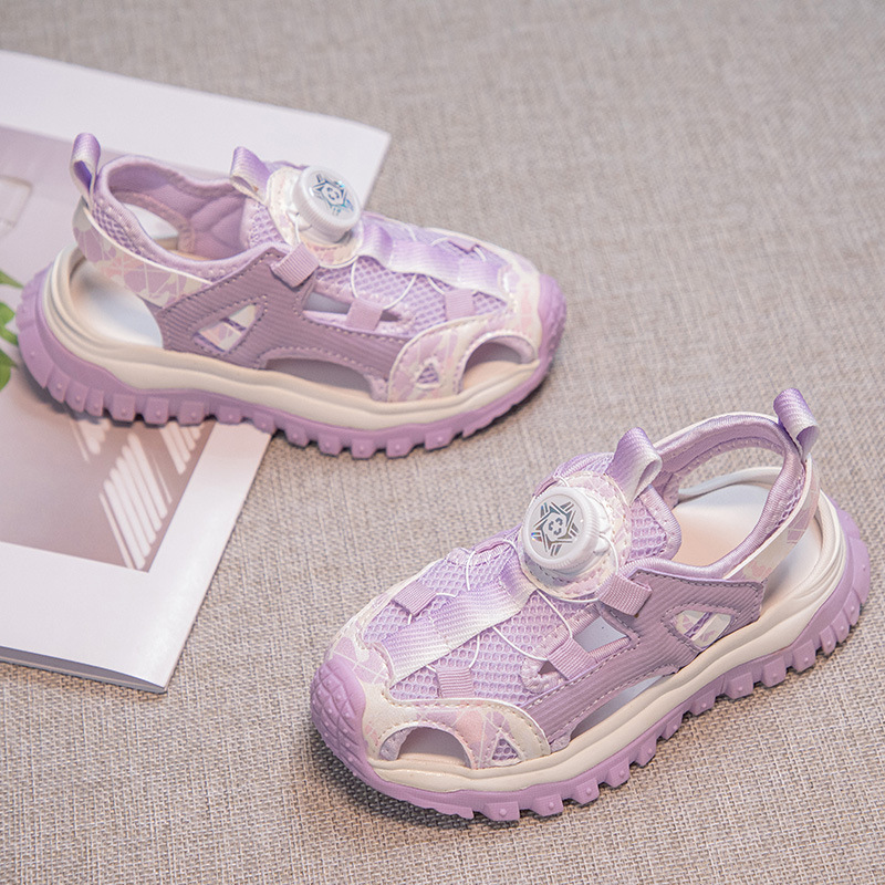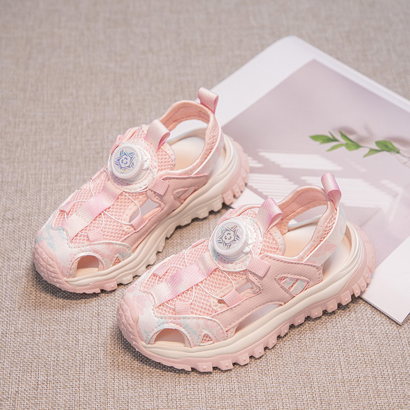 儿童运动凉鞋夏季2025新款软底时尚女童公主鞋镂空男童包头沙滩鞋