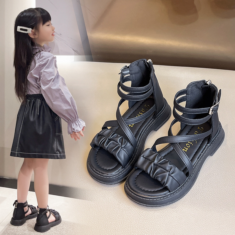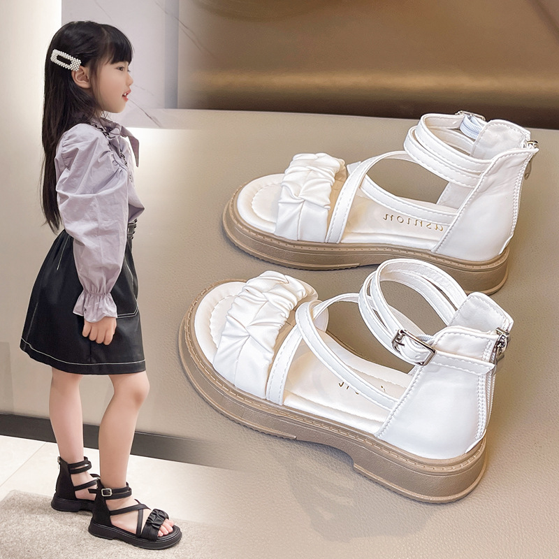 韩版仙女童风温柔厚底罗马凉鞋软底2025夏季女童学生平底沙滩鞋子