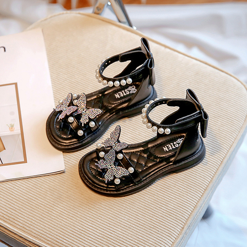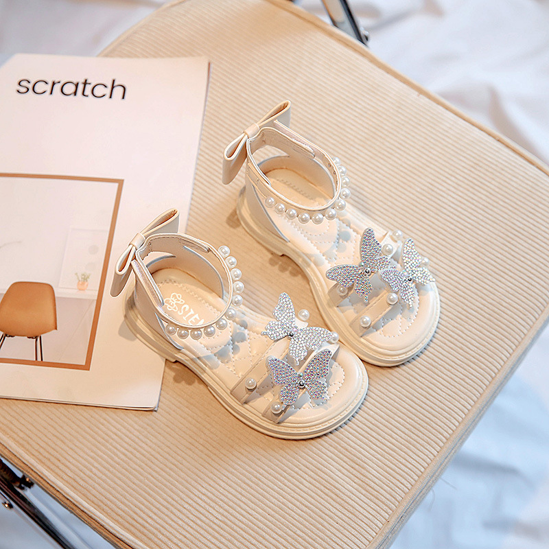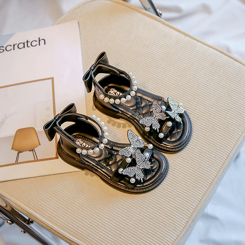 女童凉鞋2025夏季新款公主鞋软底小女孩水钻舞蹈鞋时尚蝴蝶结潮鞋