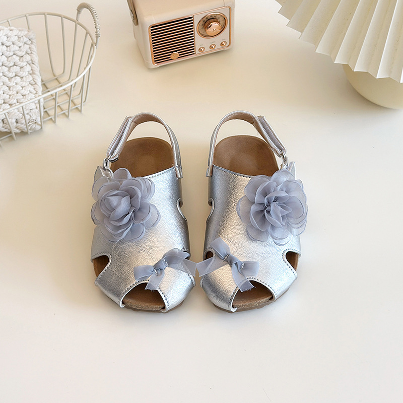 儿童鞋2025夏款女童花朵透气舒适百搭公主风蕾丝仙气鱼嘴舒适凉鞋
