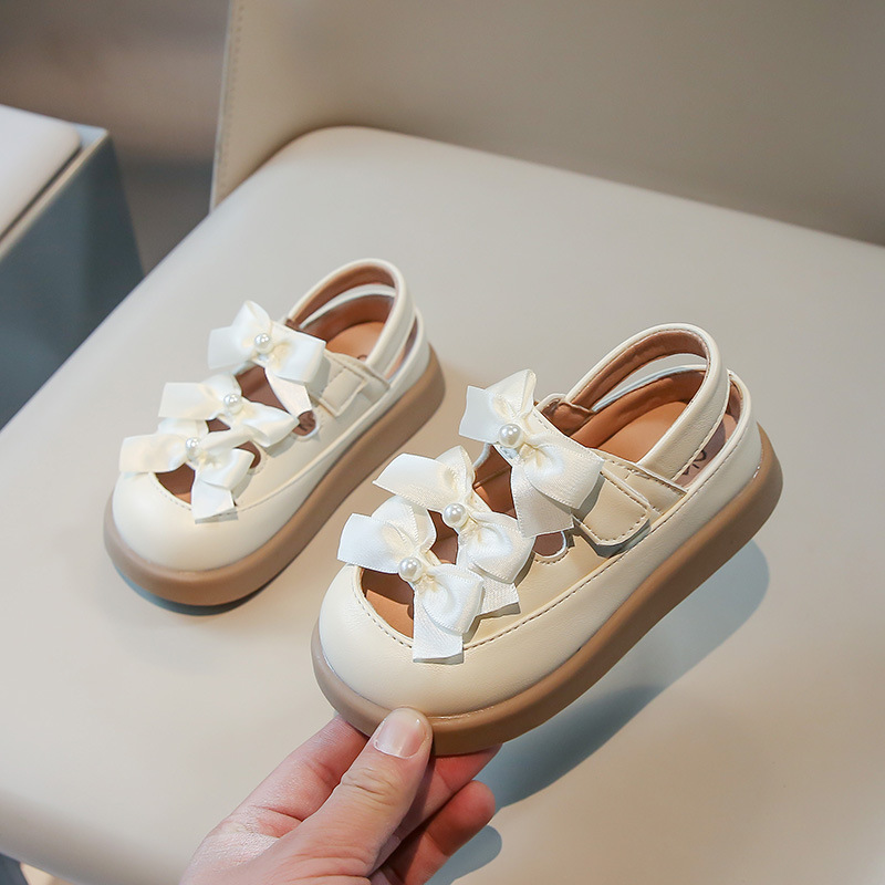 女童潮婴儿小皮鞋春夏天包头半凉鞋双色蝴蝶结公主鞋0到3岁学步鞋