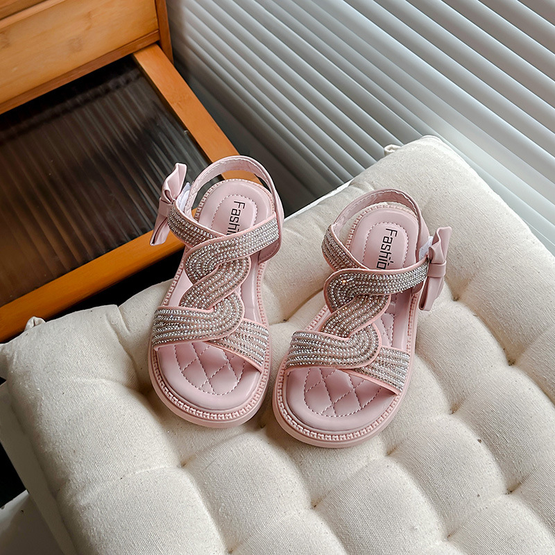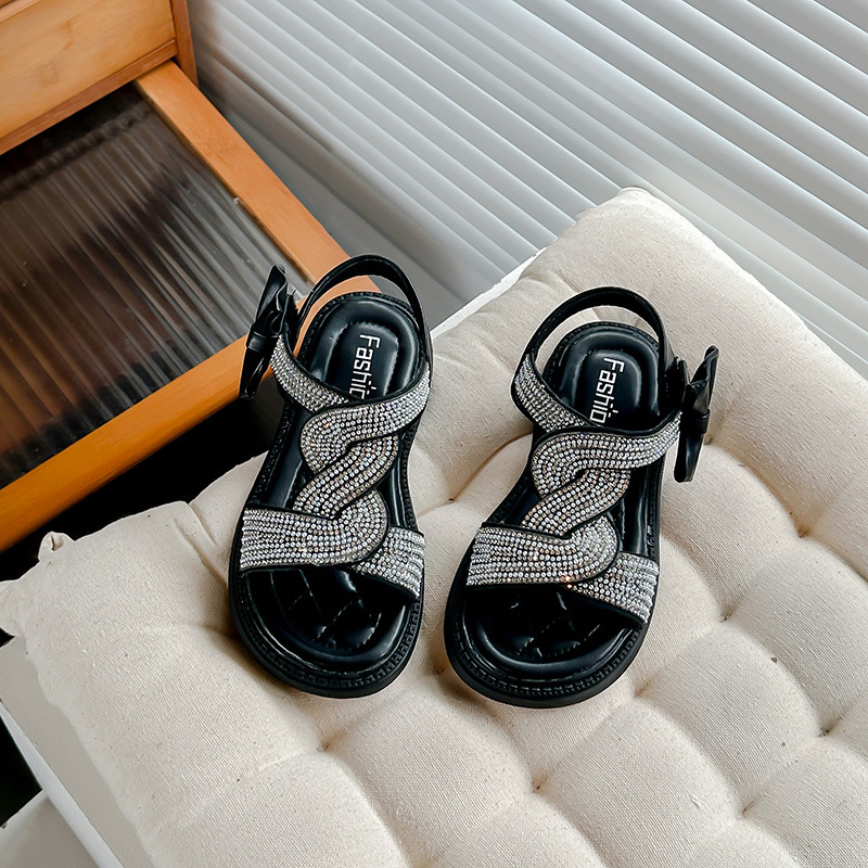 女童露趾凉鞋2025夏季新款软底水钻儿童公主鞋韩版时尚宝宝沙滩鞋