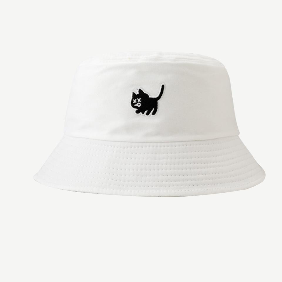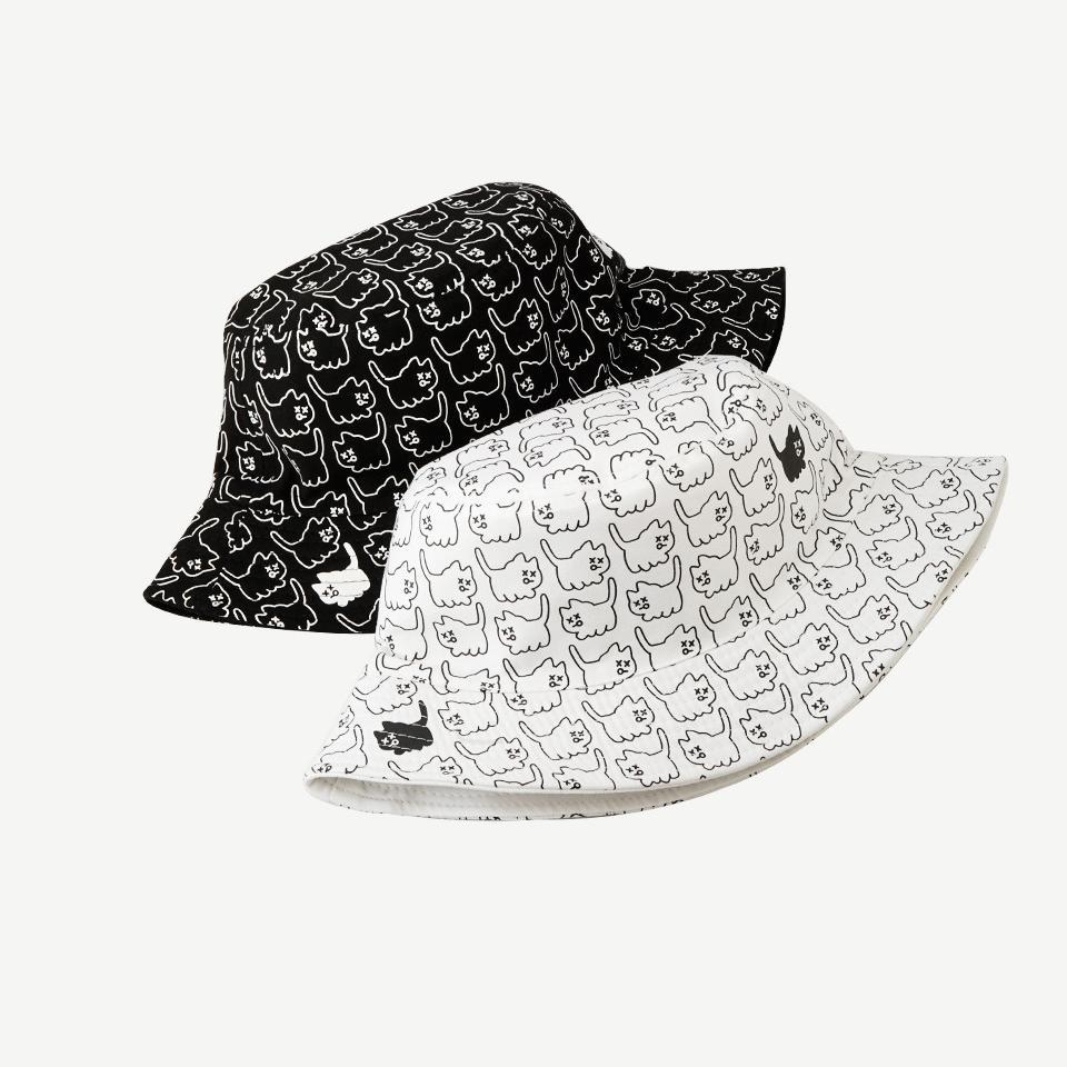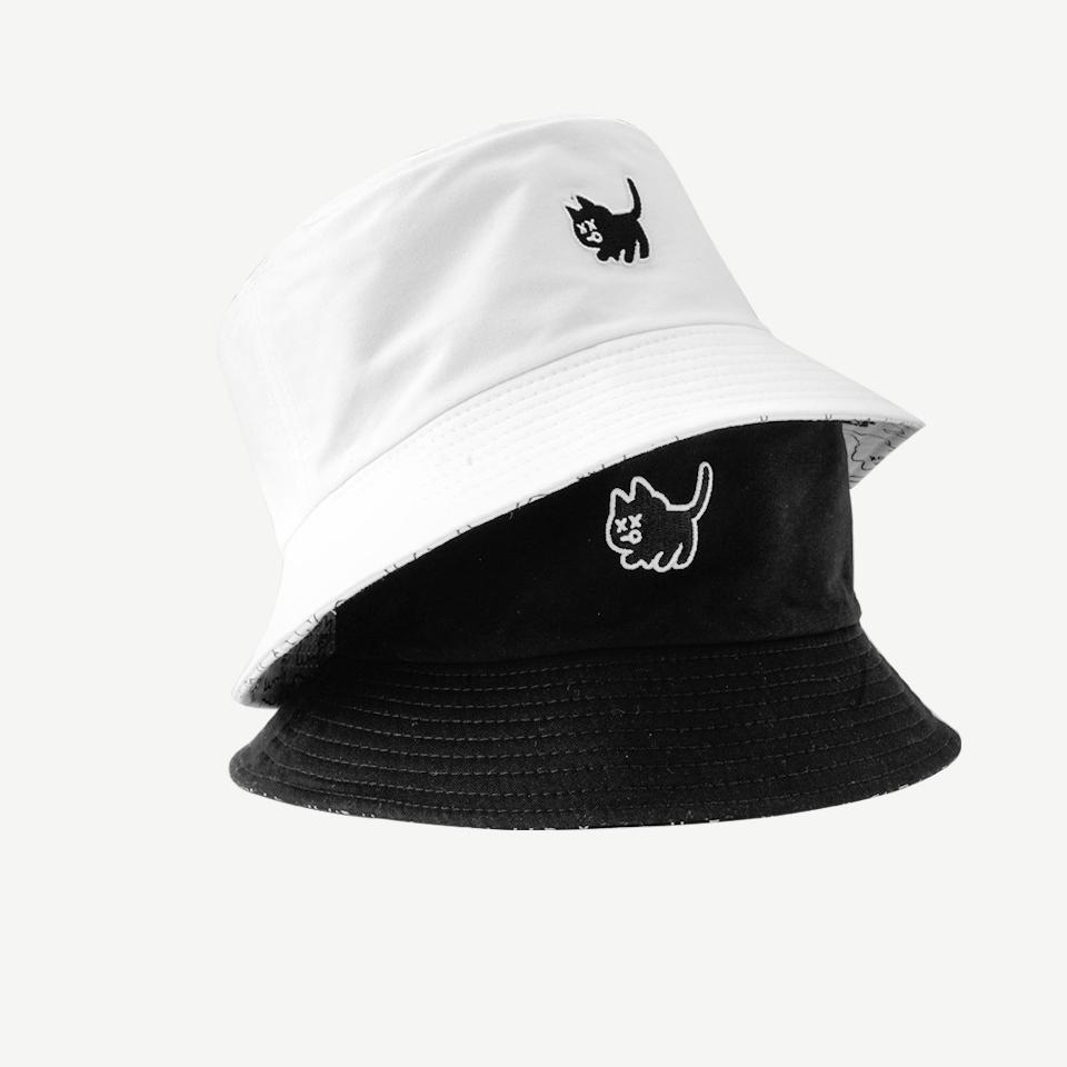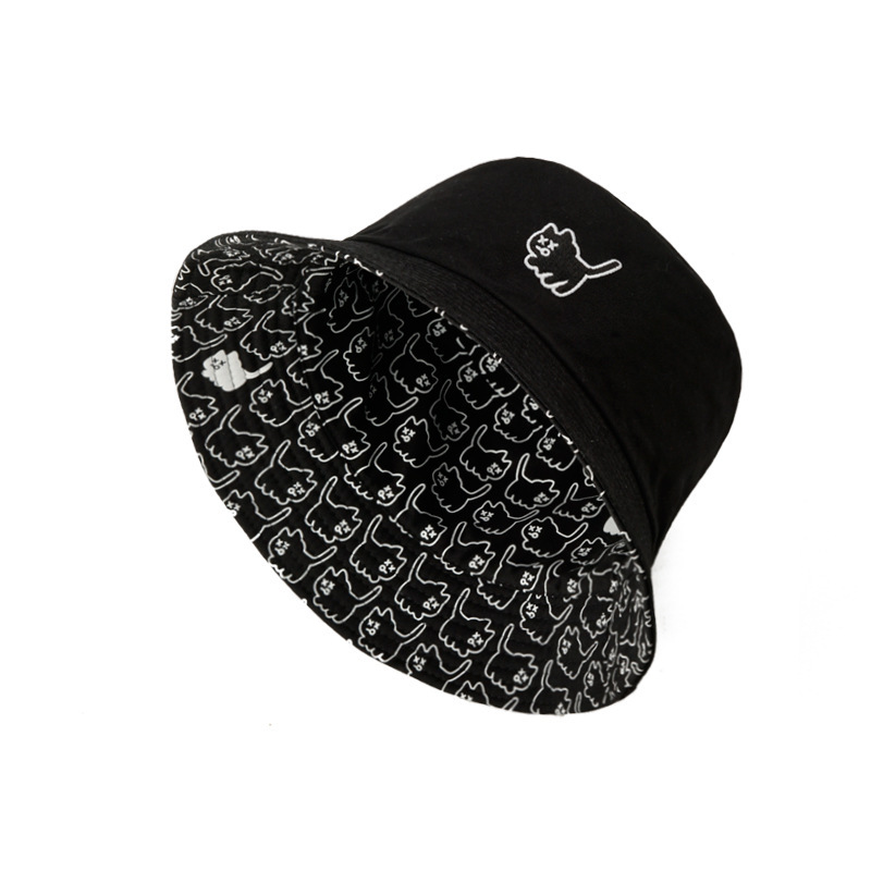 尖货!高品质学生帽子女夏季韩版刺绣双面渔夫帽黑白盆帽遮阳帽男