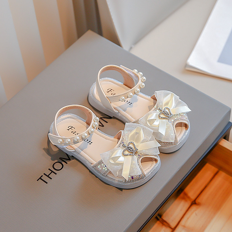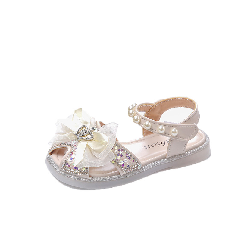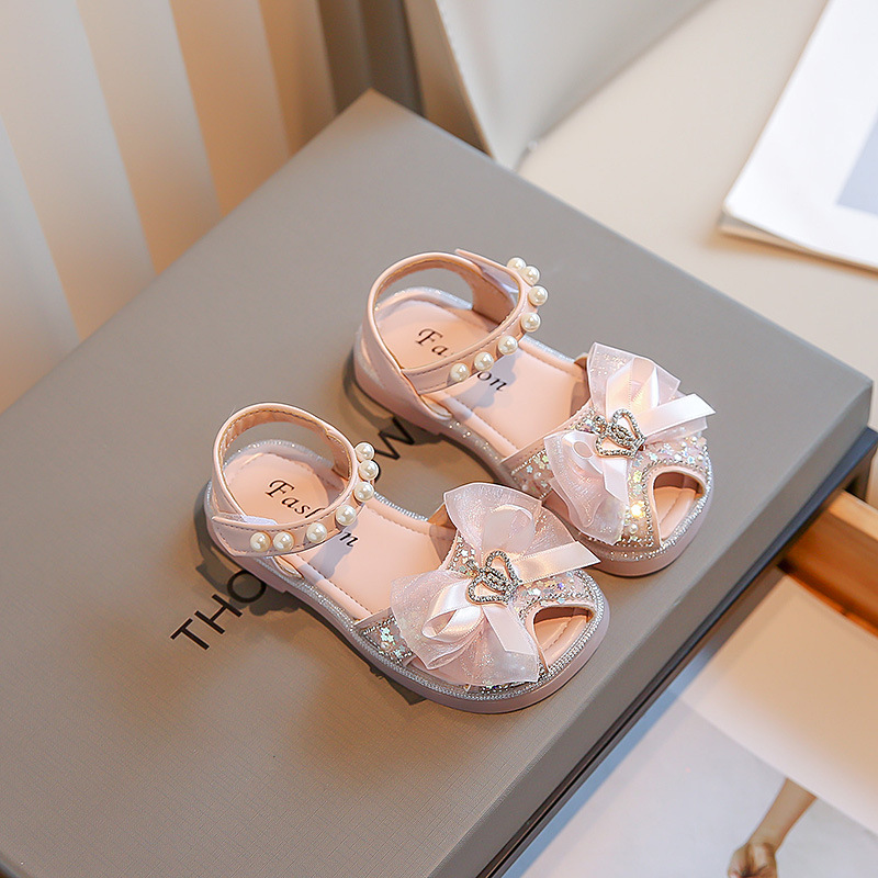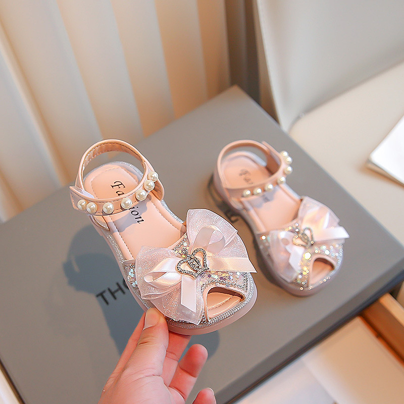 2025夏季新款女童公主凉鞋蝴蝶结水钻女宝爱莎半凉鞋超仙儿童单鞋