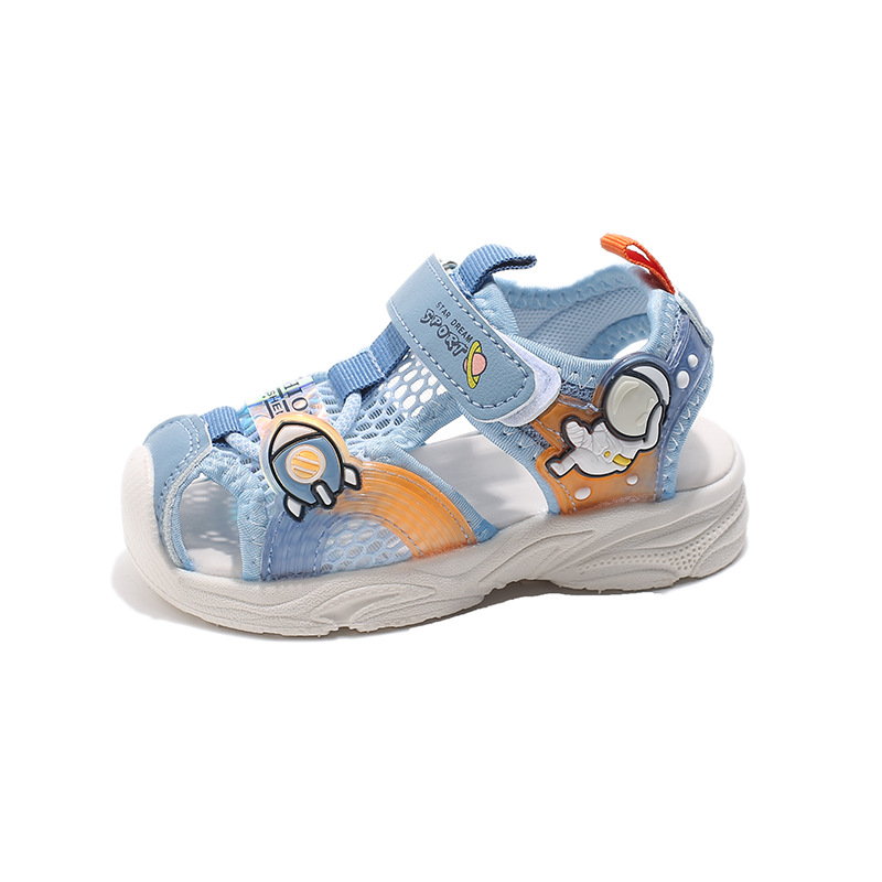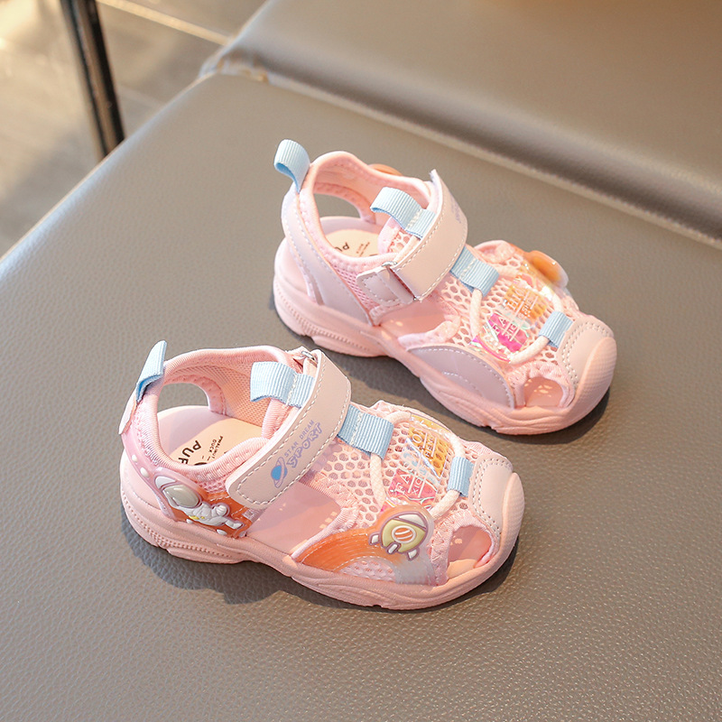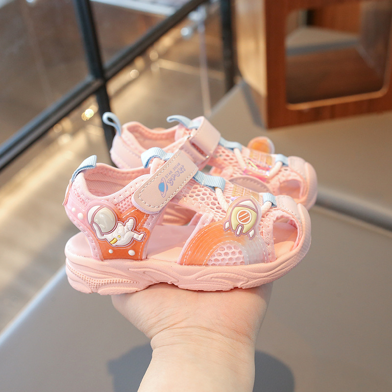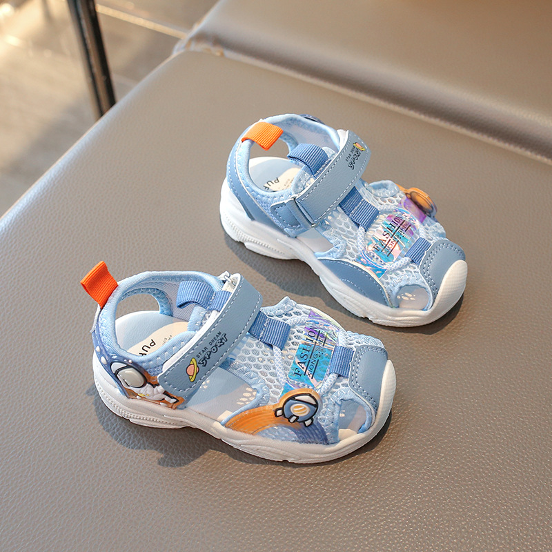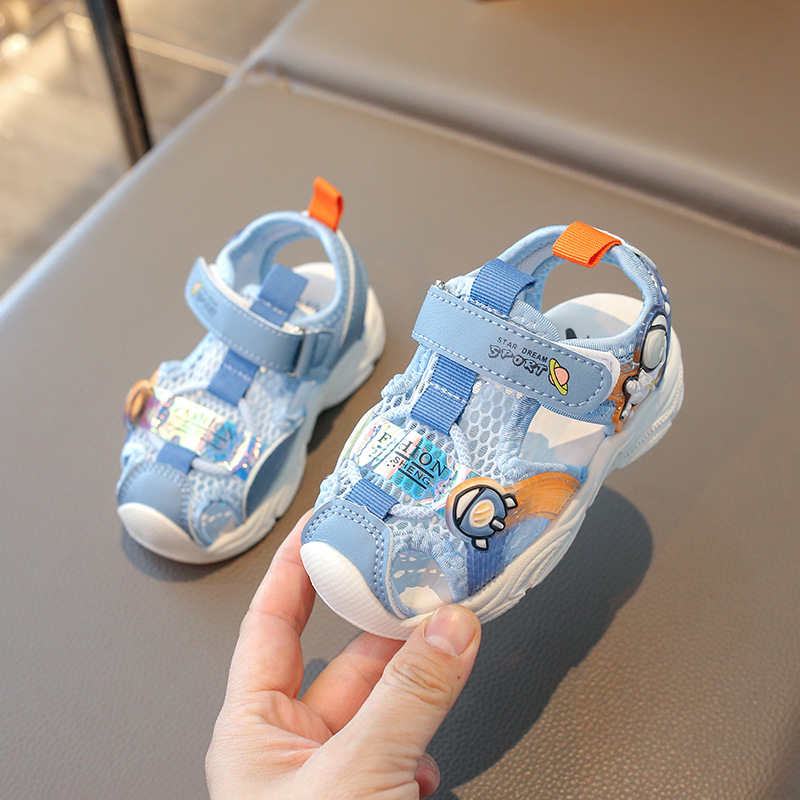 2025夏季款镂空运动小童防滑软底男童包头运动凉鞋女童宝宝学步鞋