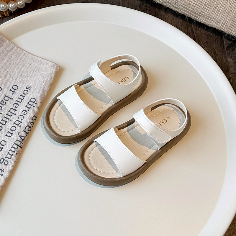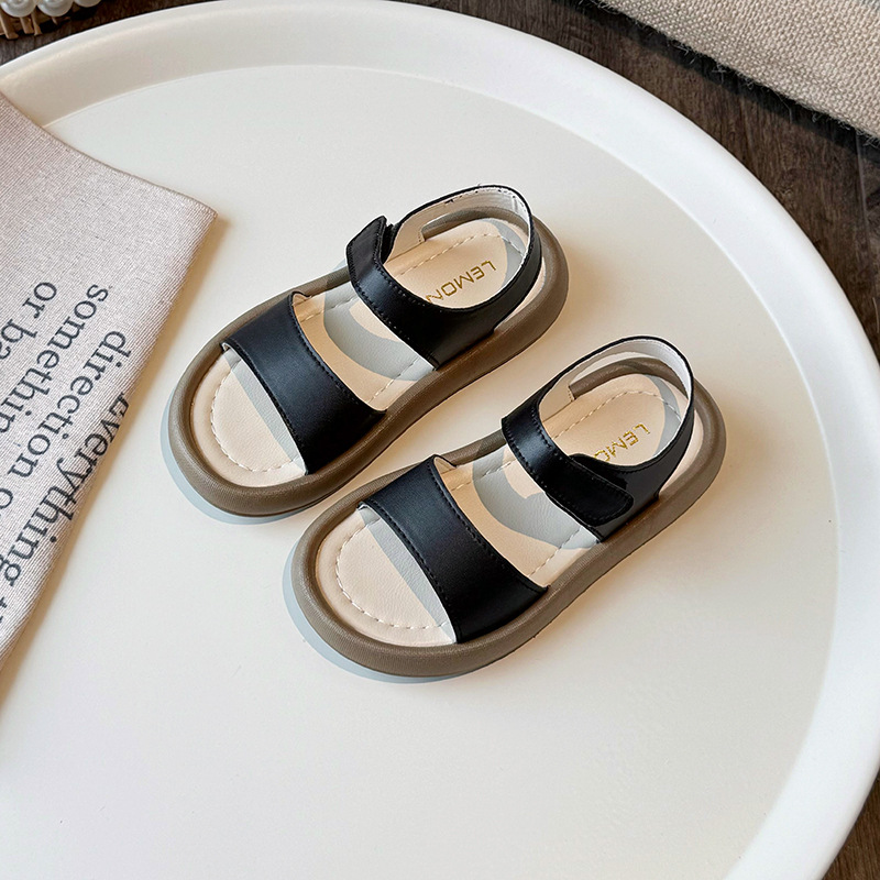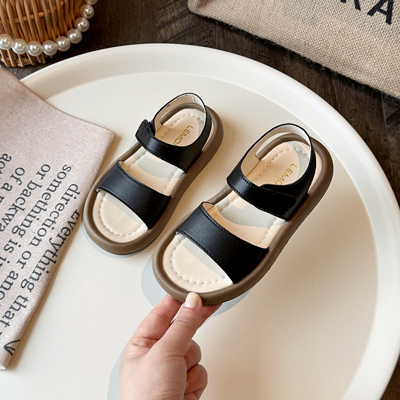 2025春季新款凉鞋女童简约露指凉鞋时尚沙滩鞋皮面休闲凉鞋