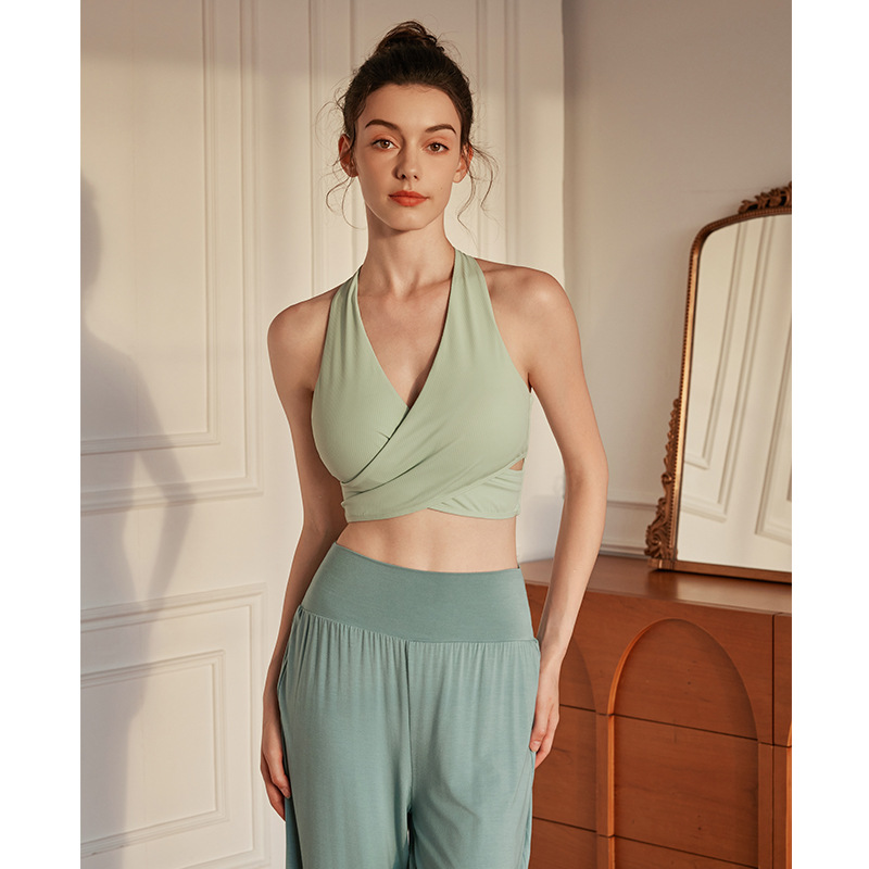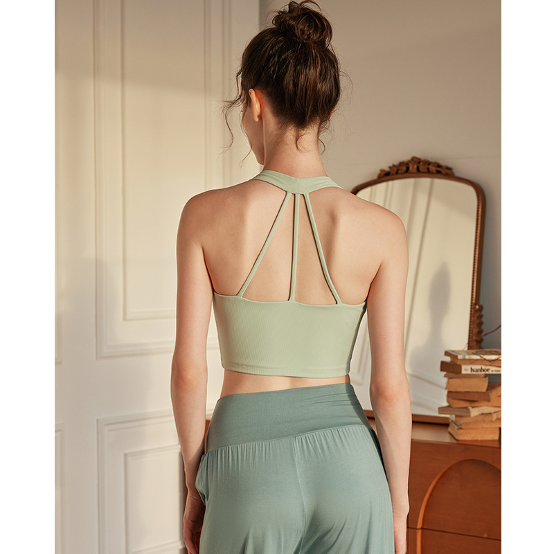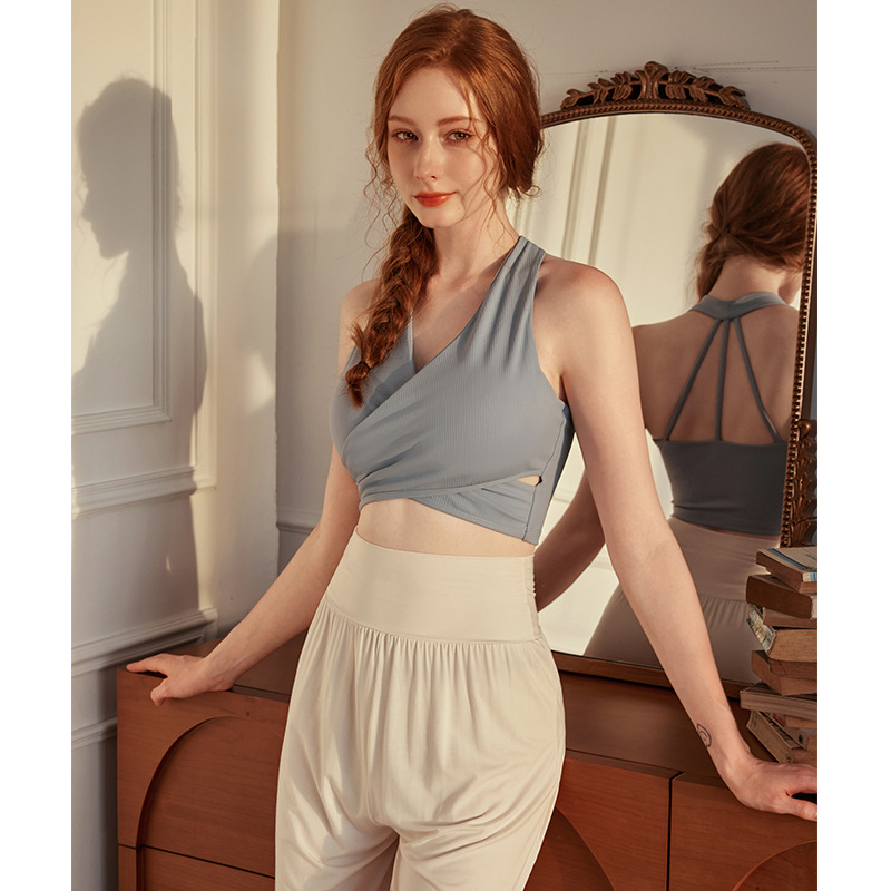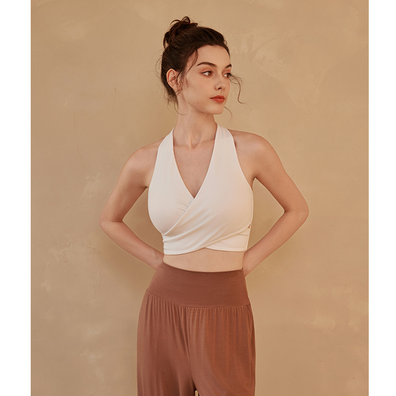 高端仙气瑜伽背心带胸垫无痕运动美背内衣背心式V领瑜伽服文胸女
