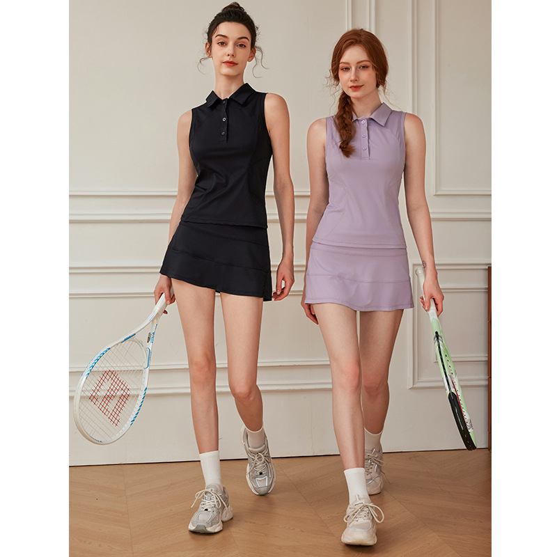 新款无袖网球裙运动套装高尔夫瑜伽短裙夏季双口袋裙裤两件套