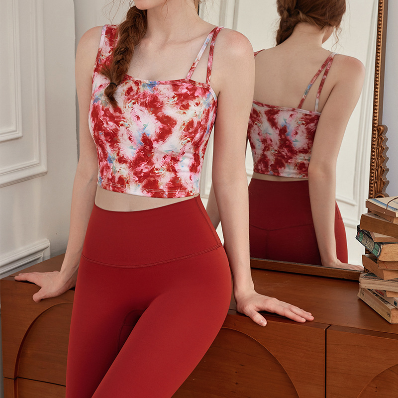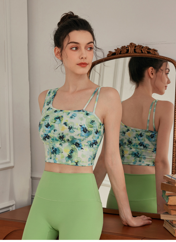 爆款油画印花文胸上衣瑜伽服背心上衣运动健身背心高级感瑜伽胸衣
