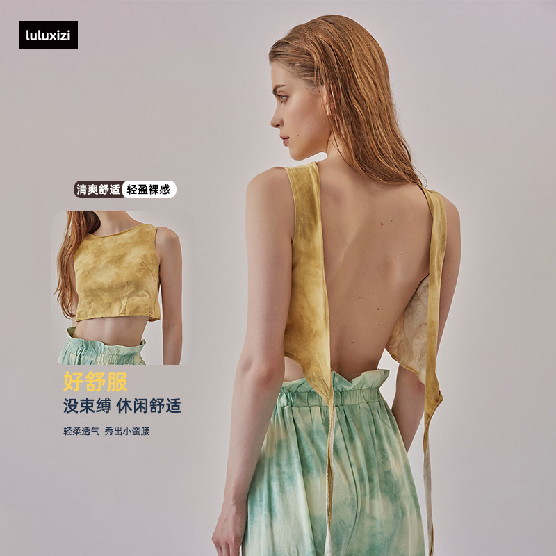 夏季新品印花清新瑜伽背心轻薄绑带前后两穿透气运动无袖背心女