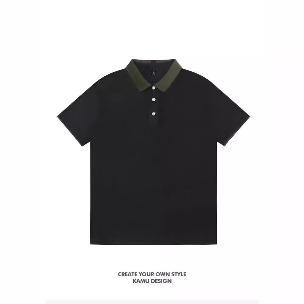 夏季拼接色POLO衫翻领潮牌时尚短袖T恤衫男士修身型百搭休闲上衣