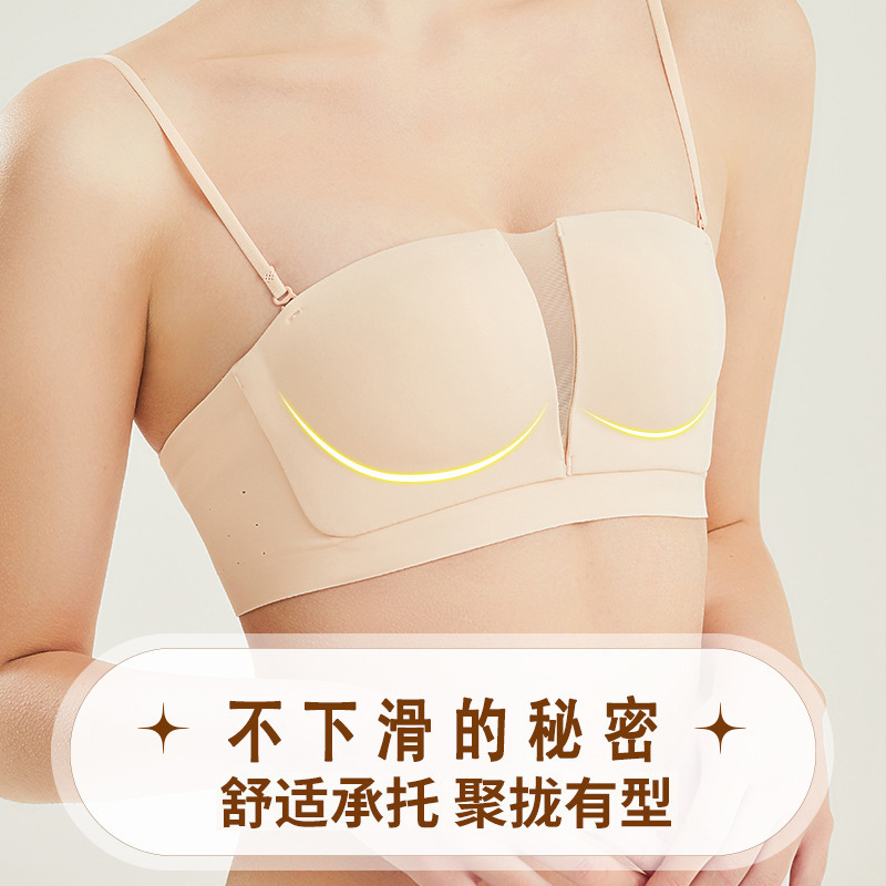 无肩带内衣女蹦迪不掉防滑小胸聚拢防下垂收副乳舒适透气无痕文胸