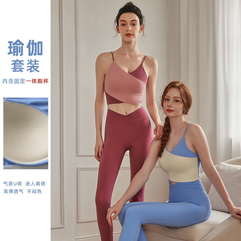 高级感瑜伽套装女健身跑步防震运动内衣瑜伽背心普拉提训练瑜伽裤