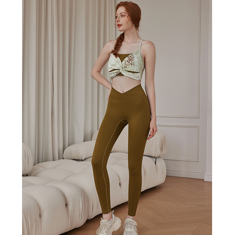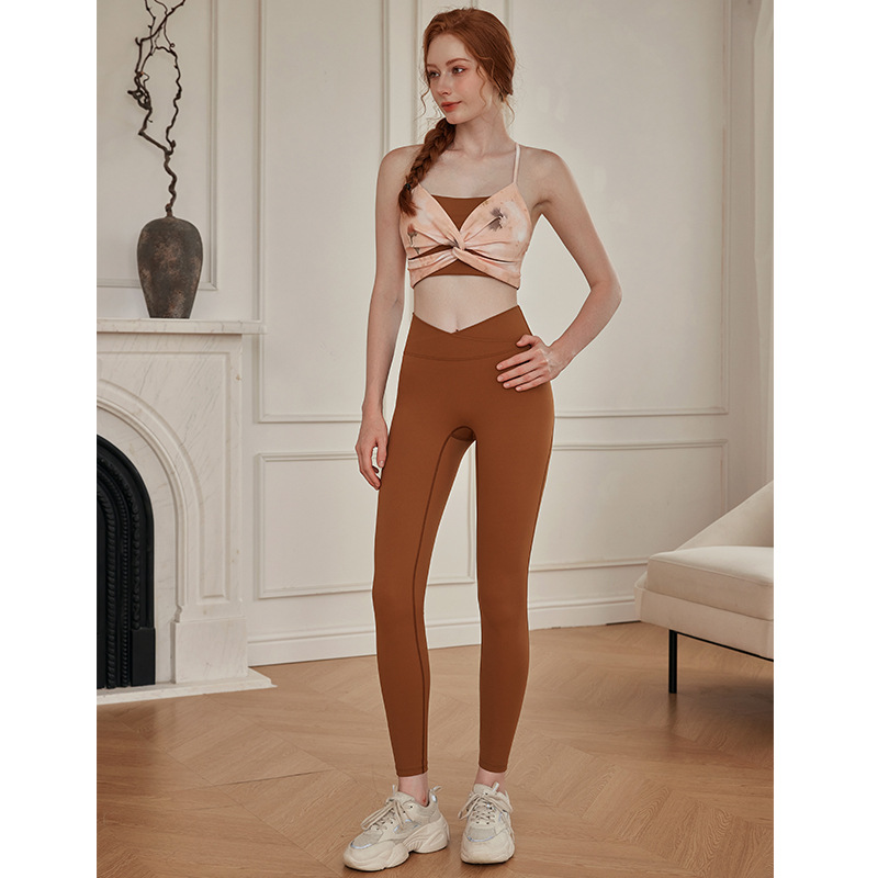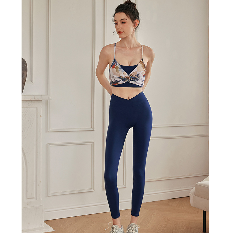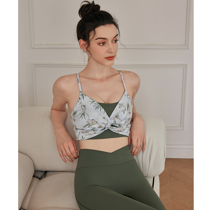 国风印花瑜伽服套装女浪漫美背固定胸垫上衣提臀收腹训练裤两件套