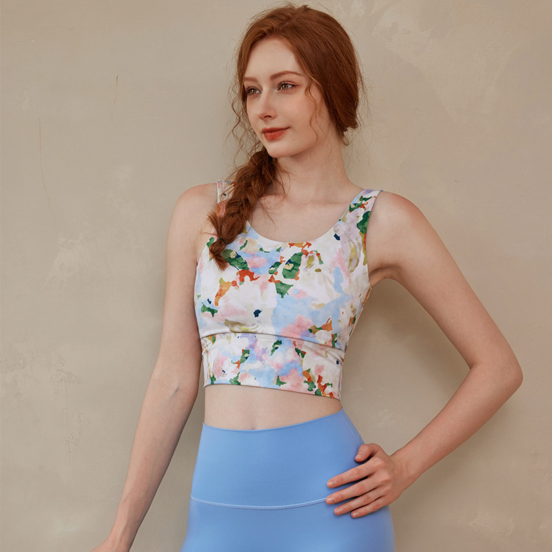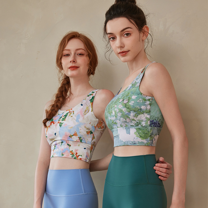印花瑜伽服套装女油画少女浪漫美背固定胸垫上衣提臀收腹训练裤