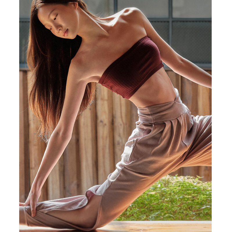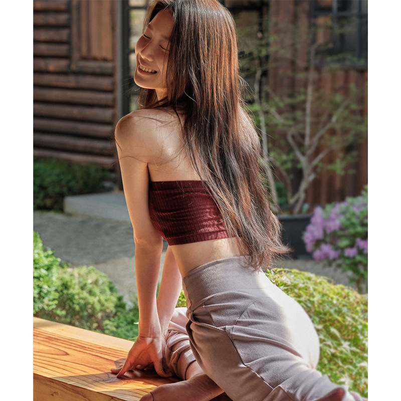 新款立体条纹瑜伽文胸紧身塑形一体式胸垫速干高弹健身短款背心女