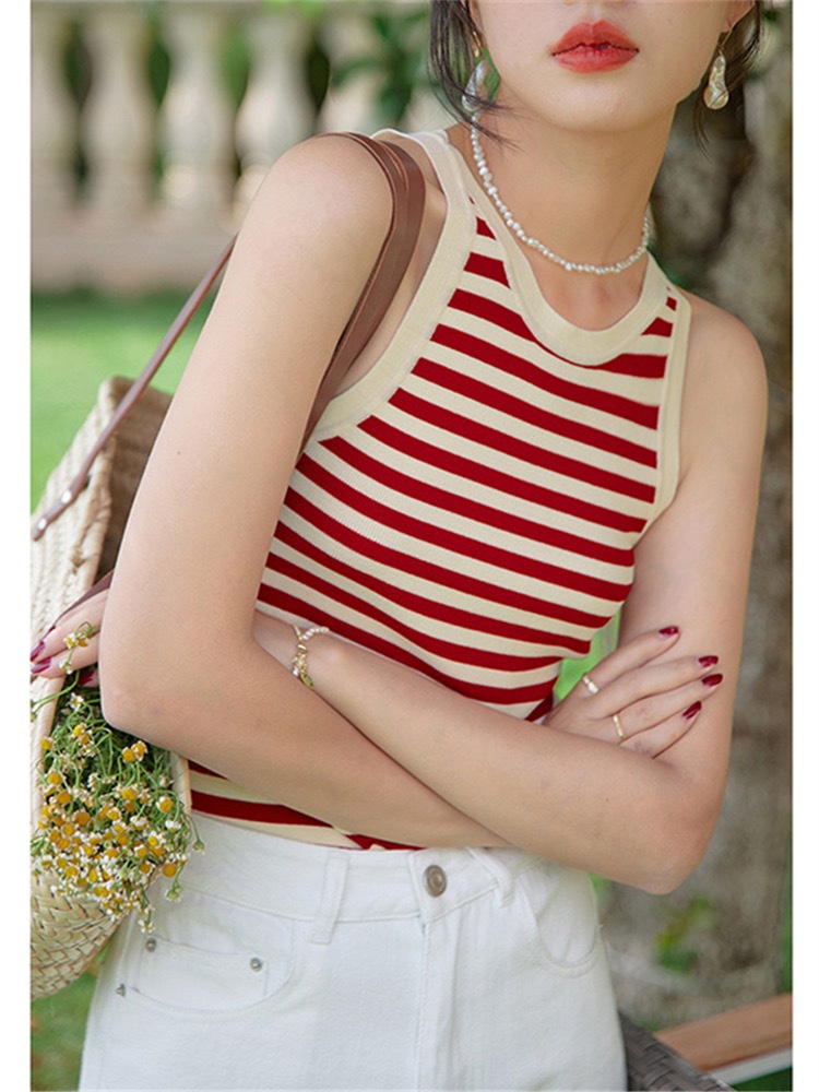 条纹针织削肩吊带背心女夏季新款修身显瘦百搭