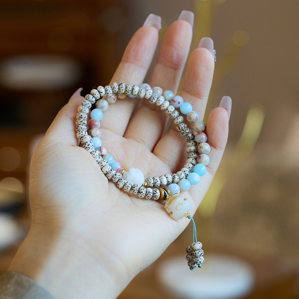 新中式天然寿山石手串星月菩提炭烧小猫双圈文玩手串佛珠念珠
