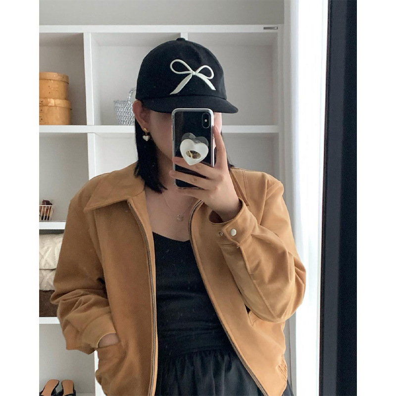 韩国小众设计师蝴蝶结刺绣图案黑色棒球帽女平帽檐鸭舌帽男潮
