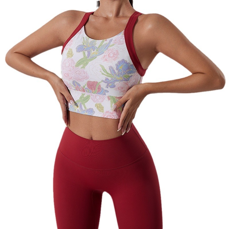 高强度运动内衣固定式胸垫幸运红瑜伽背心防震聚拢美背瑜伽文胸女