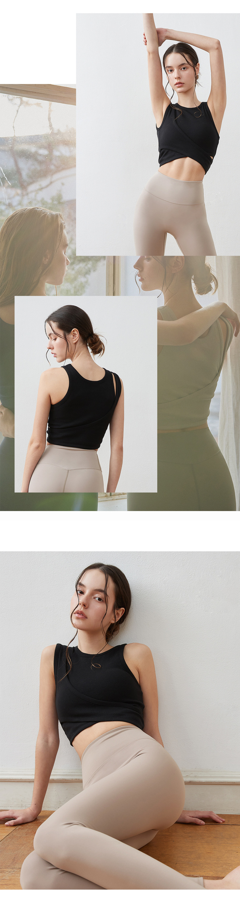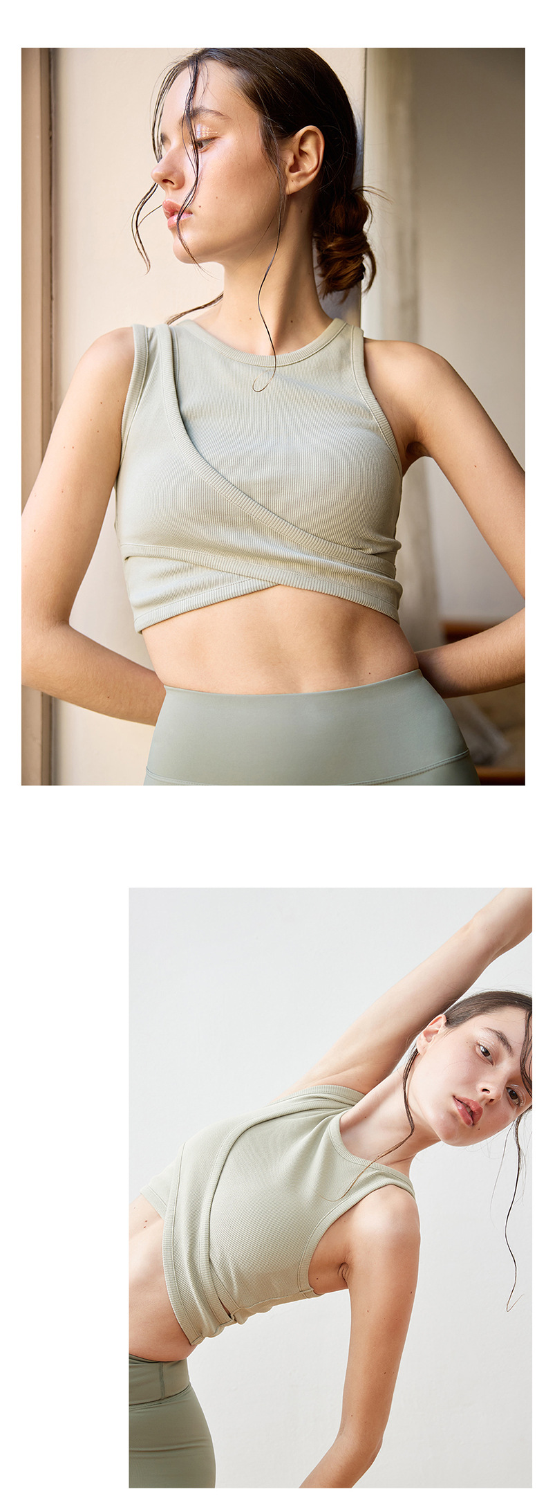 夏季新款修身螺纹瑜伽服背心运动上衣带胸垫性感交叉外穿宽肩背心