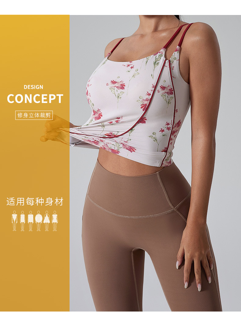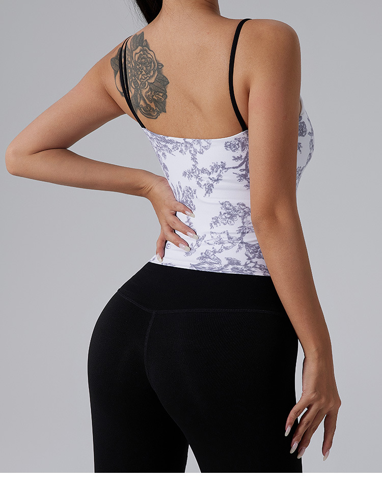 lulu气质美背运动背心 外穿跑步印花瑜伽背心细带性感健身瑜伽服