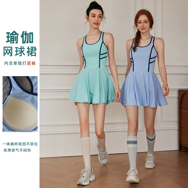 洛神裸感防走光打底运动连衣裙女夏季新款短裙户外跑步健身网球裙