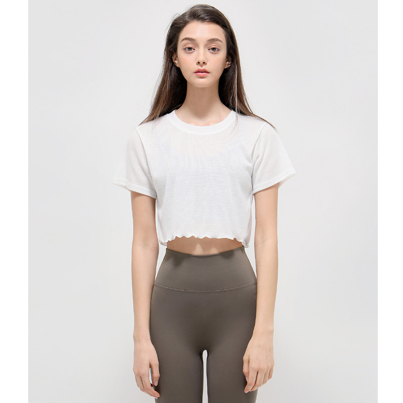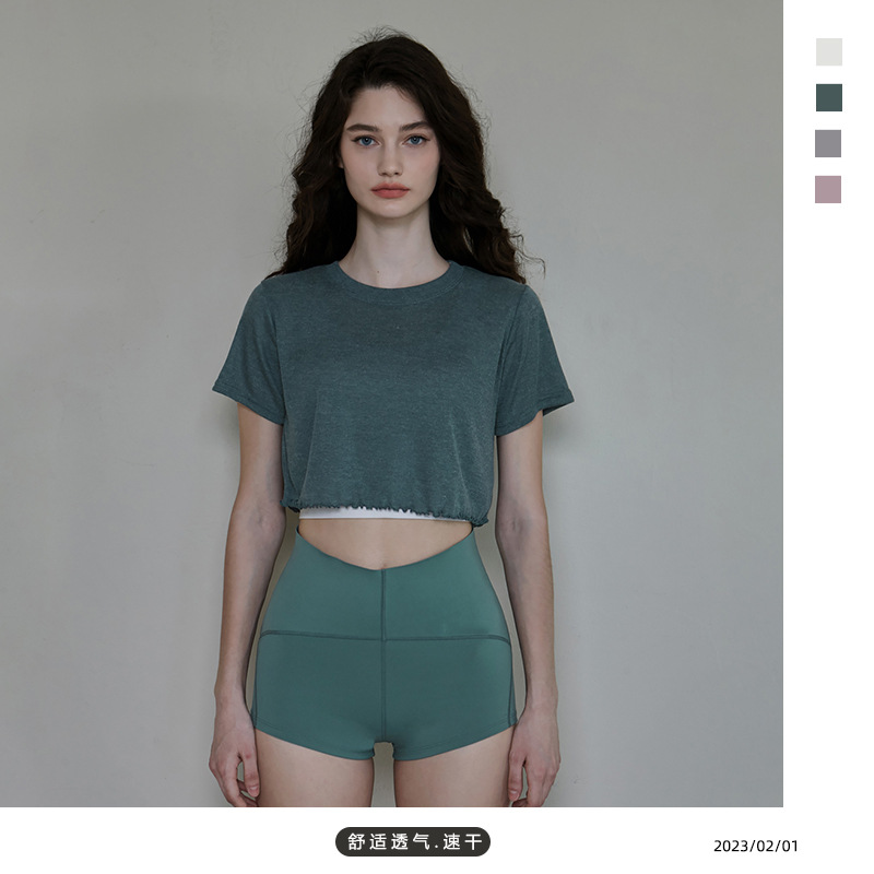 春夏新款运动健身短款小上衣女透气速干宽松跑步短袖运动T恤