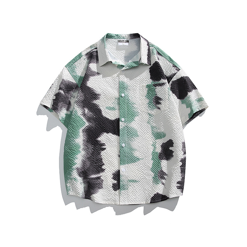 冰丝花衬衫短袖男士夏季薄款感休闲衬衣男生宽松痞帅夏天外套