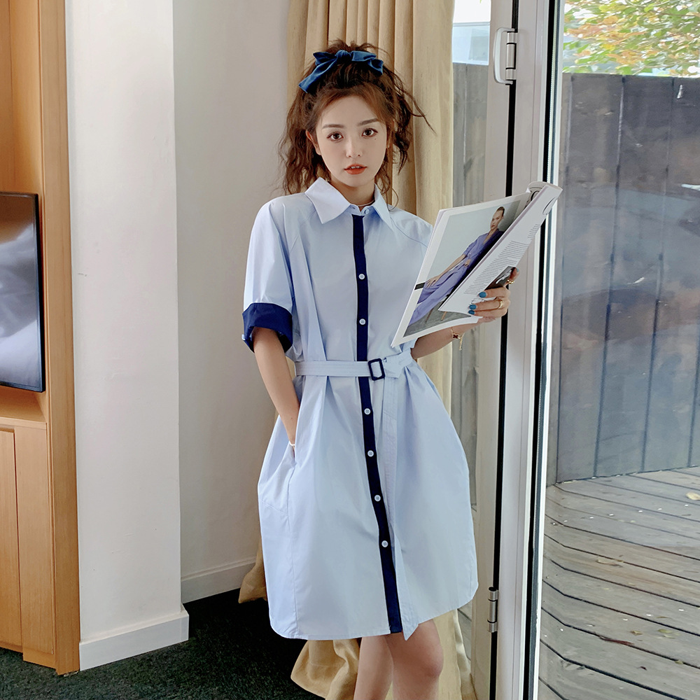 高级感时尚气质连衣裙撞色夏季收腰新款显瘦宽松休闲衬衫裙子