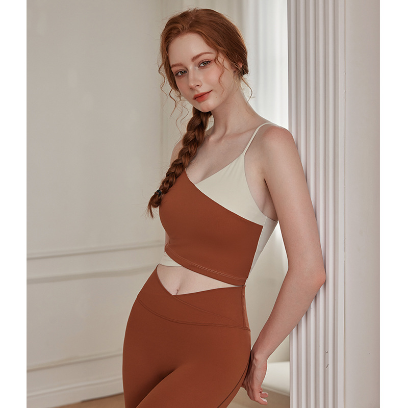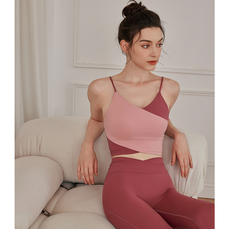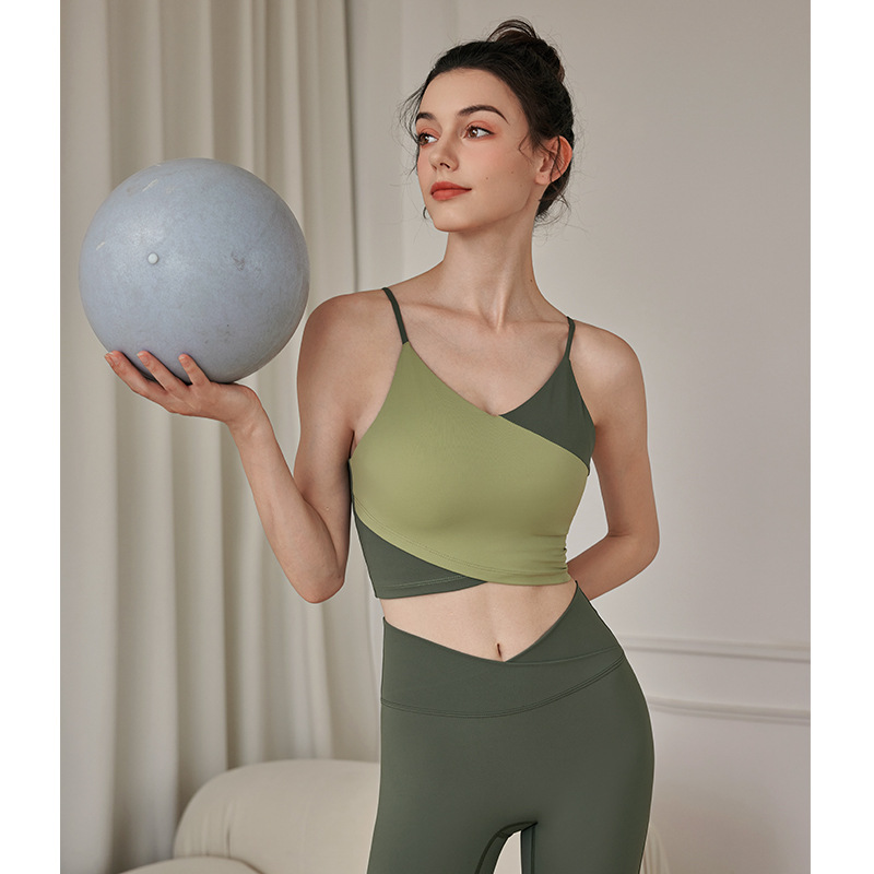 一体式美背瑜伽背心中高强度运动内衣固定杯跑步健身聚拢健身文胸